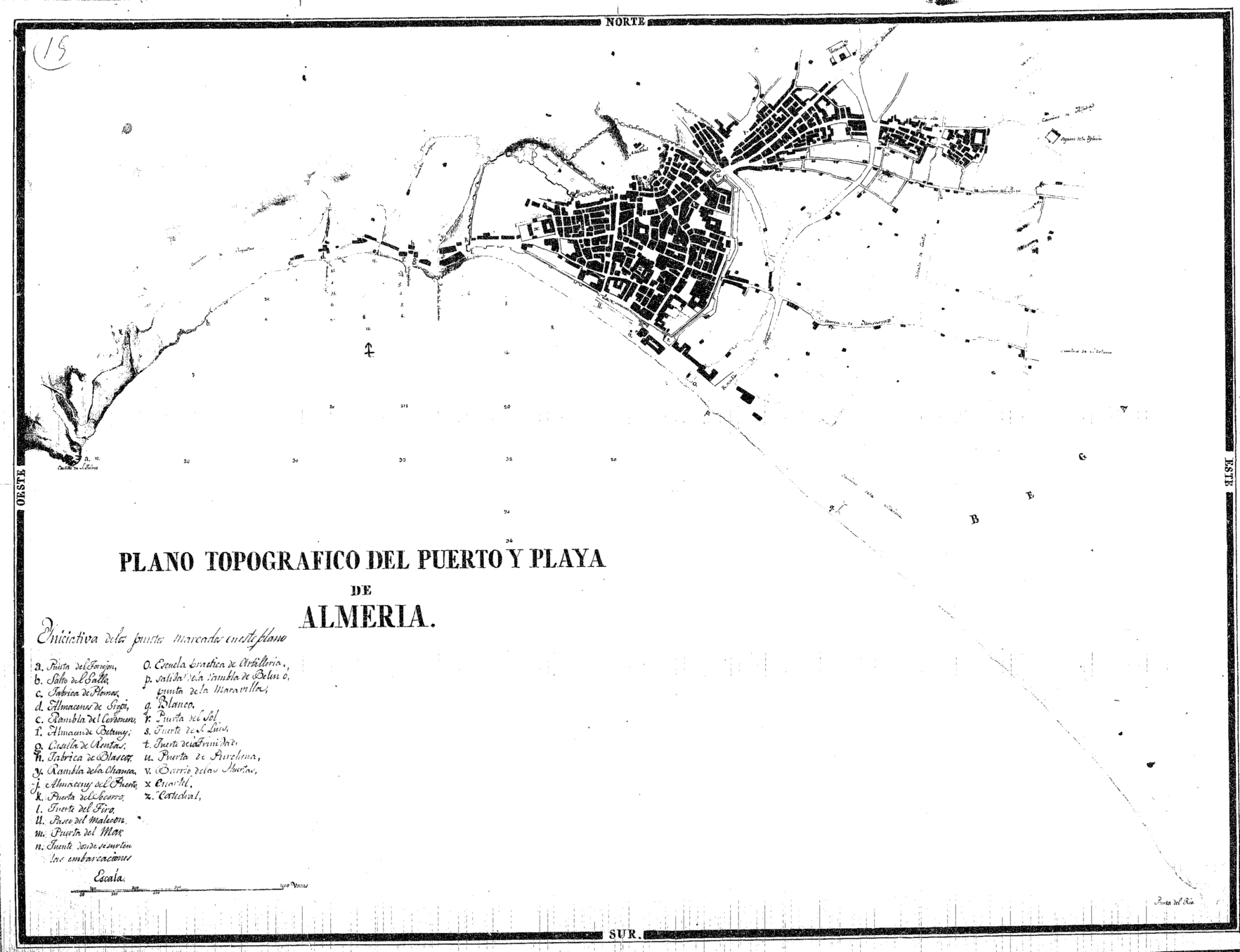 | 500 | ## | $aDebajo del título en el ángulo inferior izquierdo leyenda con los puntos principales situados en el plano por letras. Fondeaderos plano de la ciudad. Dividiendo el recuadro los puntos cardinales | 500 | ## | $aRelieve representado con números de sonda y sombras |