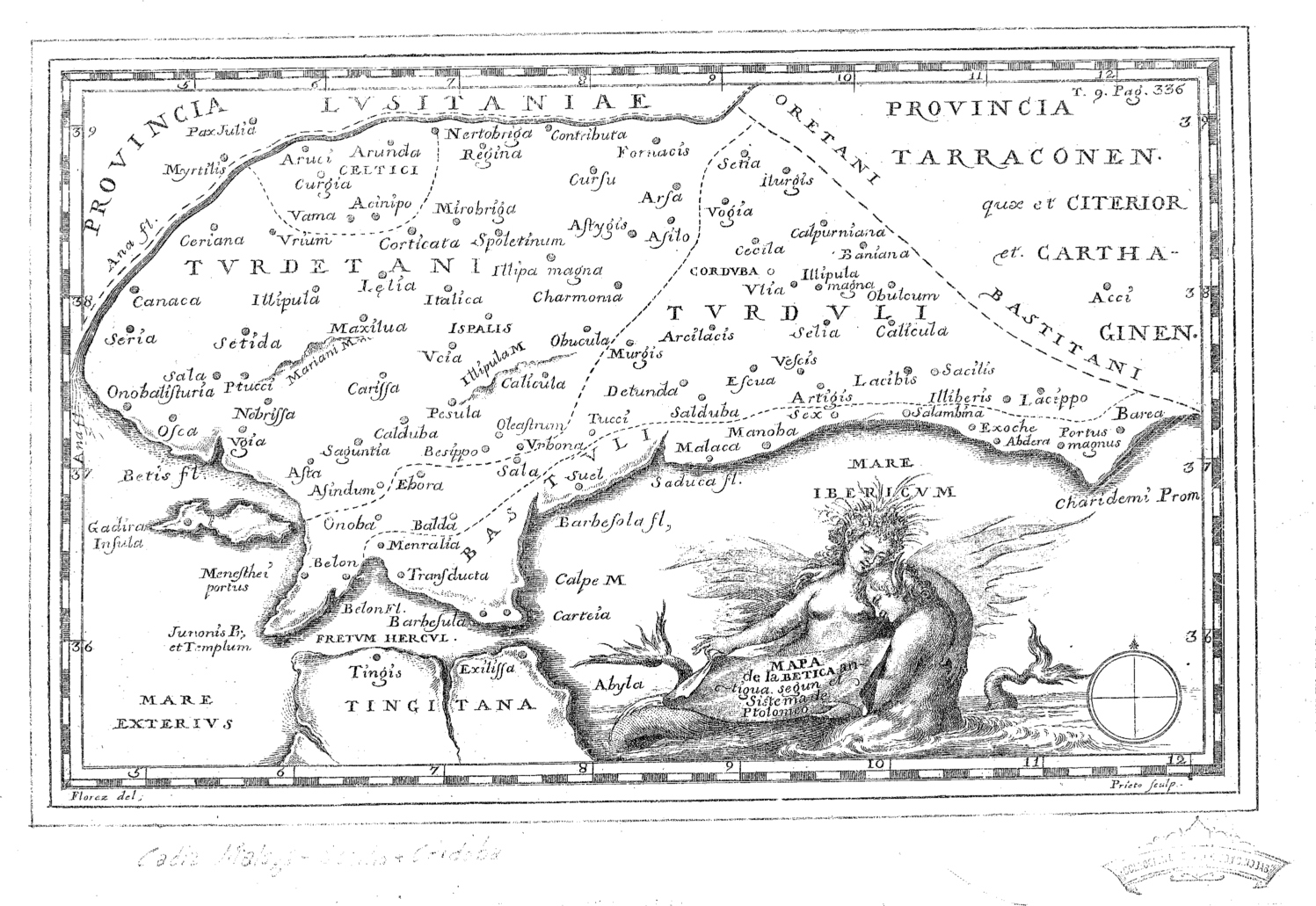 | 500 | ## | $aEscala calculada con la graduación de los paralelos | 500 | ## | $aCartela alegórica | 500 | ## | $aPerteneció a la colección de D. M. Rico y Sinobas | 500 | ## | $aEn el ángulo superior derecho aparece: T. 9 pág. 336 al parecer de la Obra España Sagrada de Enrique Florez | 500 | ## | $aMapa de la Bética según la versión de C. Ptolomeo interpretada por el padre Enrique Flórez, que lo presenta a continuación de la página 336 del apéndice titulado I. "Tablas de Tolomeo sobre la Bética en griego y en latin" del tomo IX de su obra "España Sagrada...", impreso en Madrid por Antonio Marín en 1752. Labró la plancha el prestigioso grabador salmantino Tomás Francisco Prieto, considerado uno de los mejores de su tiempo, quien, entre otros cargos, desempeñó los de Grabador General de las casa de la moneda de España e Indias y Director de Grabado de la Real Academia de Bellas Artes de San Fernando | 500 | ## | $aMientras en otro de los mapas de este mismo tomo Flórez ofrecía una visión de la antigua provincia Bética sobre un mapa moderno, en este caso la muestra de acuerdo con el máximo exponente de la geografía de la Antigüedad, adaptando las líneas del mapa y la toponimia a sus escritos y legado cartográfico -"Gadira Insula" en lugar de "Gades, Mare Exterivs por Océano Atlántico..."-, subrayando así las diferencias de conocimientos entre las edades antigua y moderna. Según el sistema seguido por Ptolomeo, la Bética se divide en distintas áreas correspondientes a los pueblos que la habitaban -Celtas, Turdetanos, Túrdulos, Bástulos-, consignándose también aquellos fronterizos, como los Bastetanos y Oretanos |