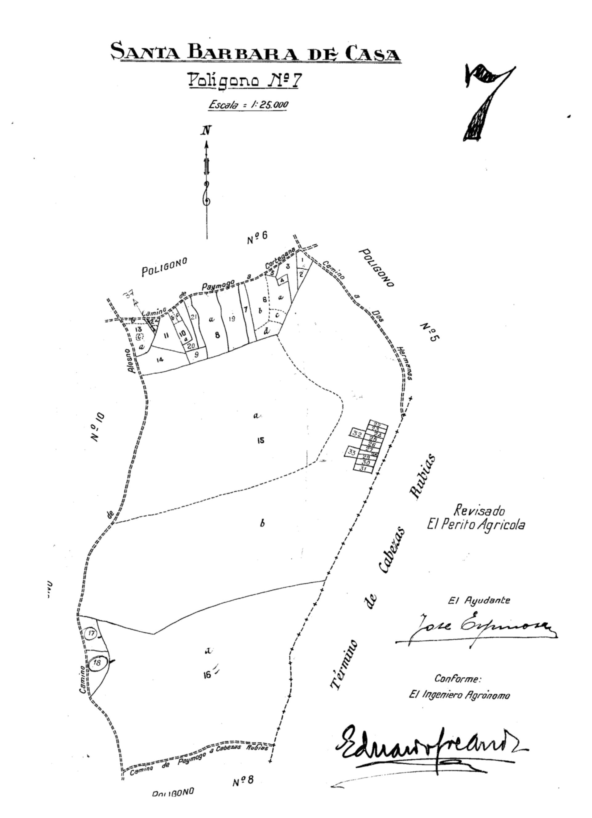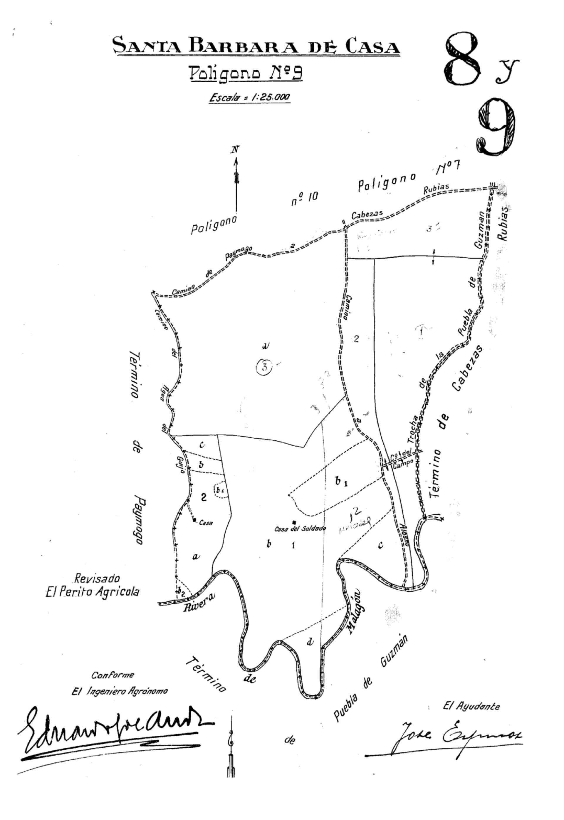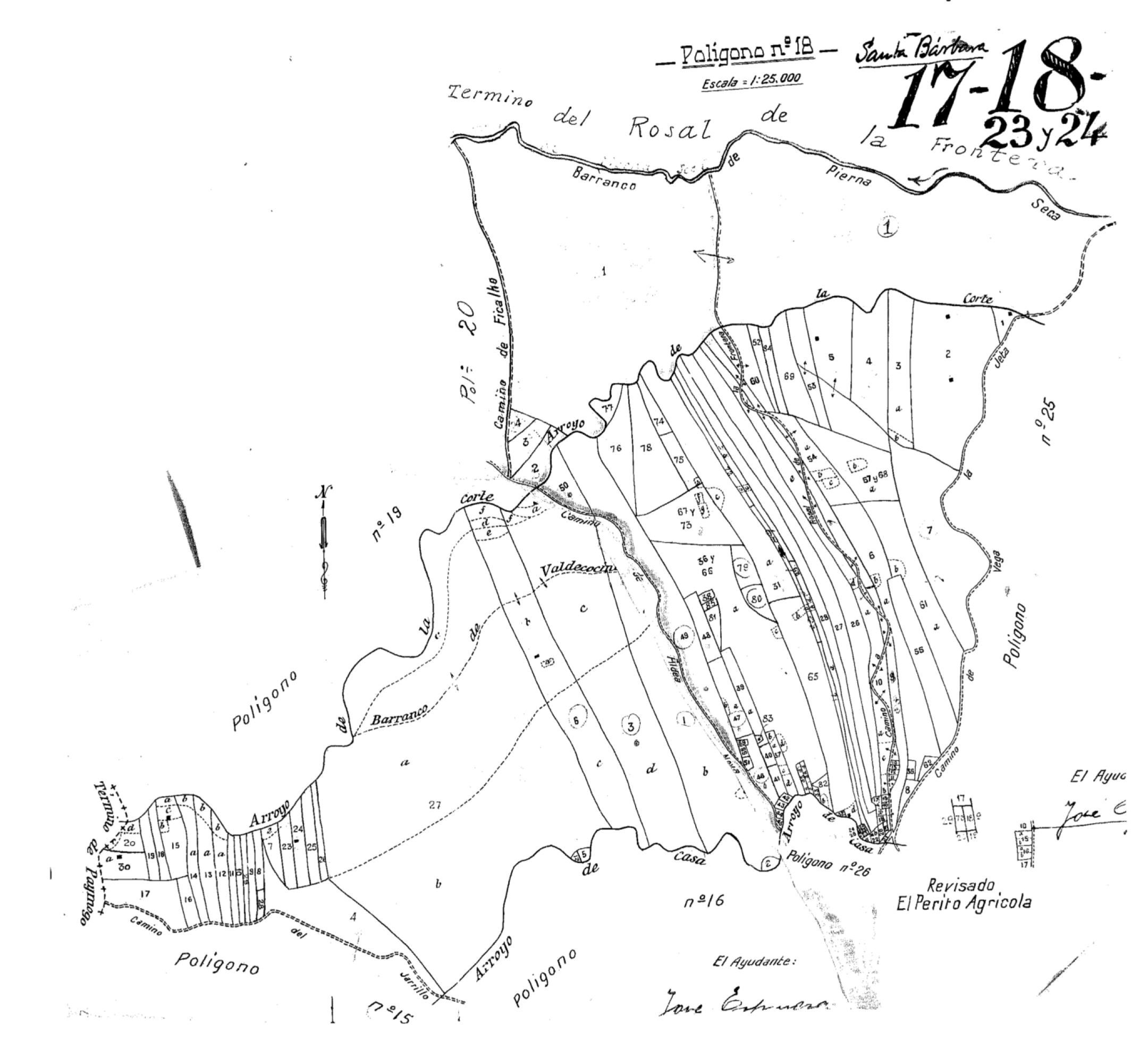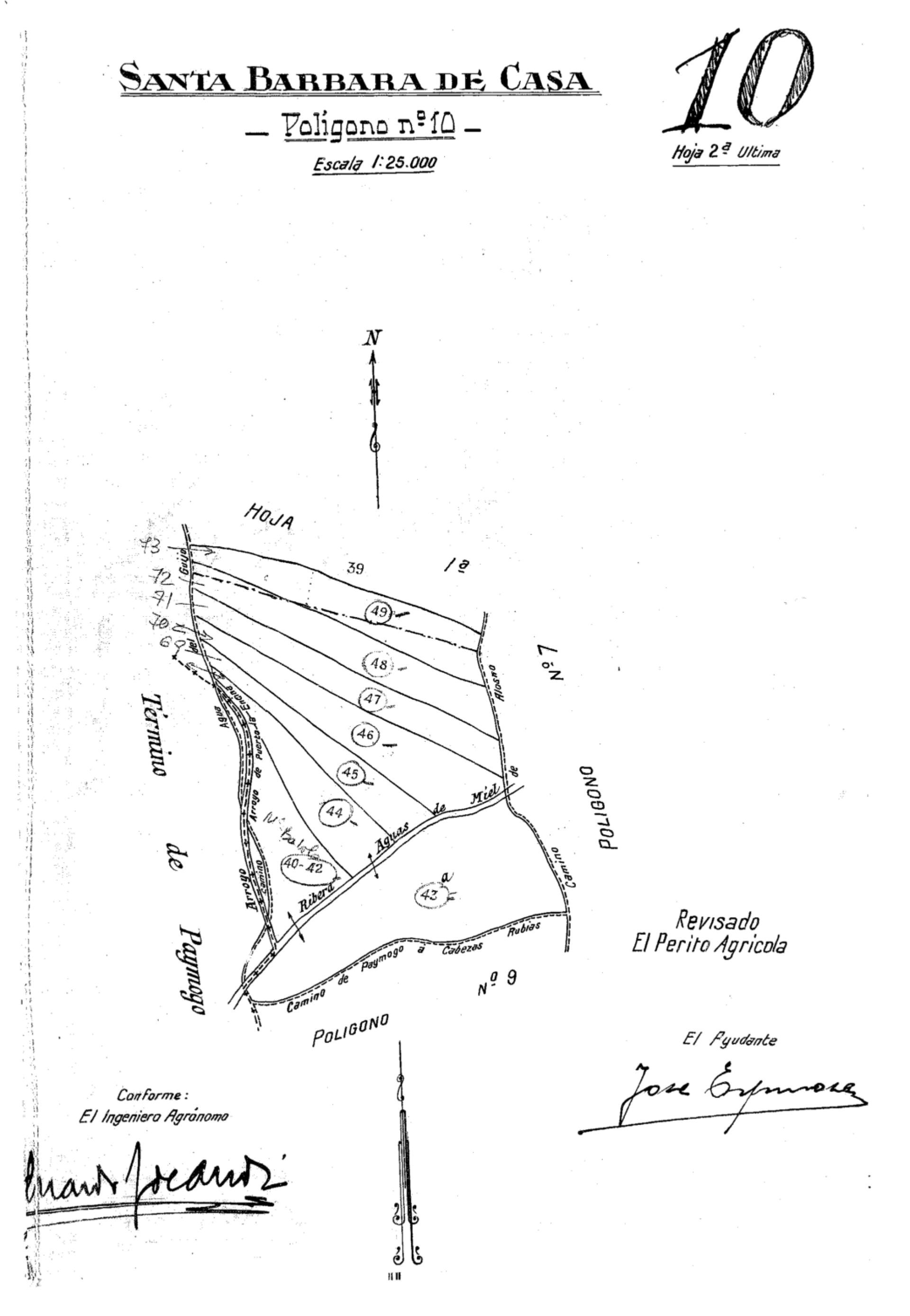 | 500 | ## | $aSanta Bárbara de Casa está dividido en 27 polígonos | 500 | ## | $aOrientado mediante flecha | 500 | ## | $aNo aparece fecha, pero la sabemos por documentación adjunta |
