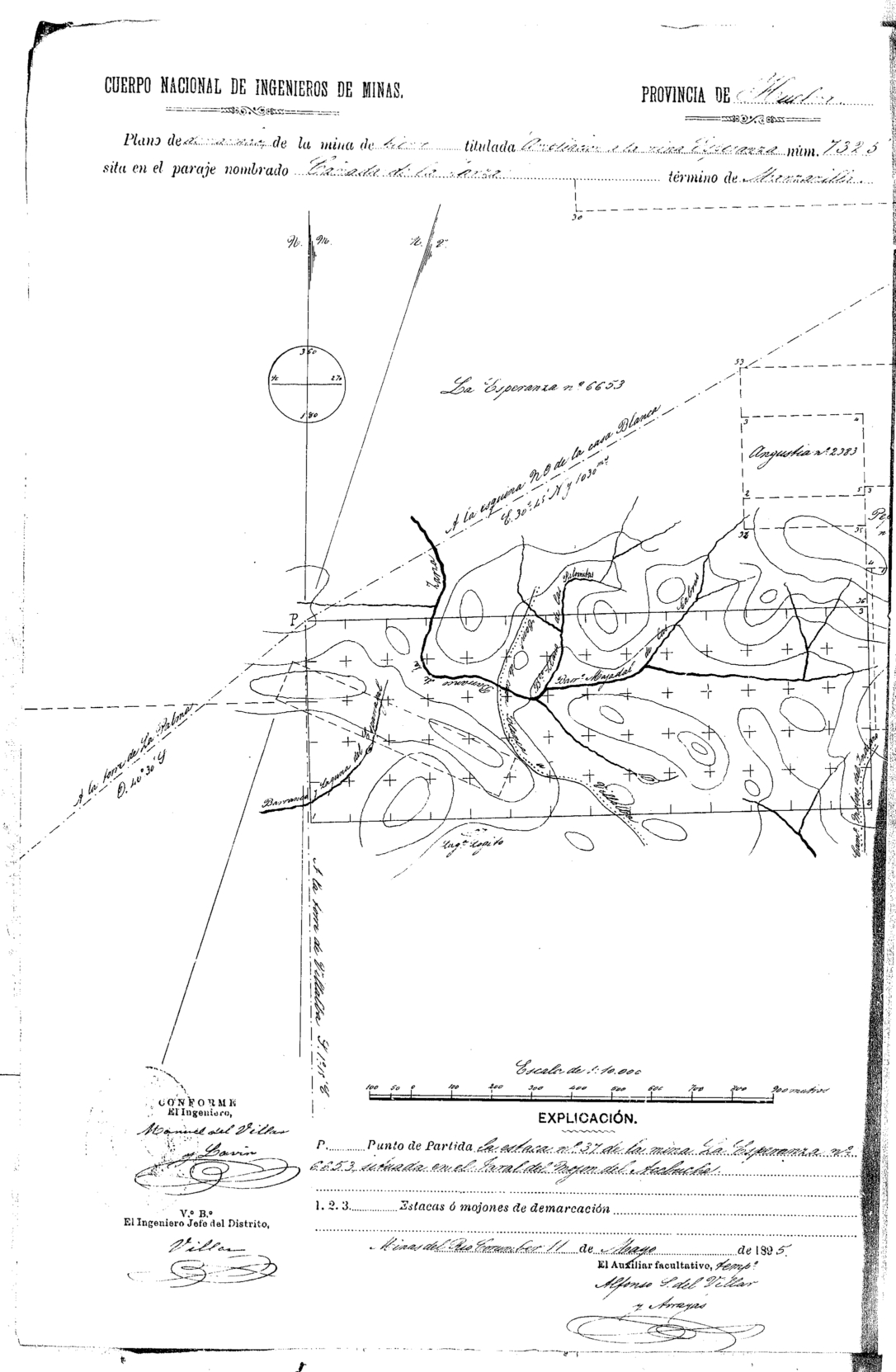| 500 | ## | $aOrientación Sur-Norte | 500 | ## | $aPlano perteneciente a una mina caducada | 500 | ## | $aPlano bien conservado | 500 | ## | $aContiene nota explicativa | 500 | ## | $aPlano acompañado de hoja adjunta donde se indican las visuales de referencia puntos fijos y las líneas de demarcación |