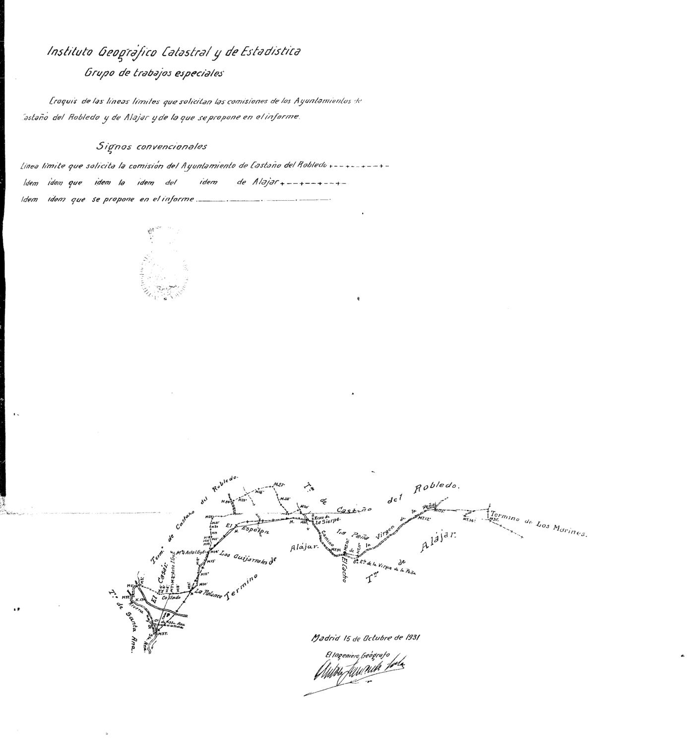 | 500 | ## | $aPlano grapado al expediente "determinación del deslinde entre los términos de Castaño del Robledo y Alájar | 500 | ## | $ano presenta escala | 500 | ## | $arecoge el sello del INstituto Geográfico Catastral y Estadístico | 500 | ## | $arecoge numerosos topónimos del lugar | 500 | ## | $aposee índice | 500 | ## | $aplano en buen estado de conservación a pesar de poseer pequeñas manchas de humedad | 500 | ## | $arecoge los caminos, arroyos,barrancos y resto de accidentes geográficos existentes |
