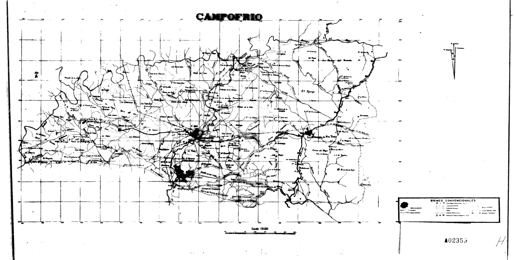 | 500 | ## | $aBuen estado de conservación | 500 | ## | $aCopia reducida del mapa topográfico de Campofrío | 500 | ## | $aLa escala 1:25000 que aparece en el plano debe ser la del documento original siendo la de la copia 1:50000 aproximadamente | 500 | ## | $aEn la parte derecha se ha dibujado el norte magnético, Lambert y verdadero | 500 | ## | $aTérminos de Campofrío y de La Granada de Riotinto | 500 | ## | $aLeyenda que recoge núcleos de población, carreteras, caminos, línea de alta tensión, línea de demarcación, vértices, minas, ríos |