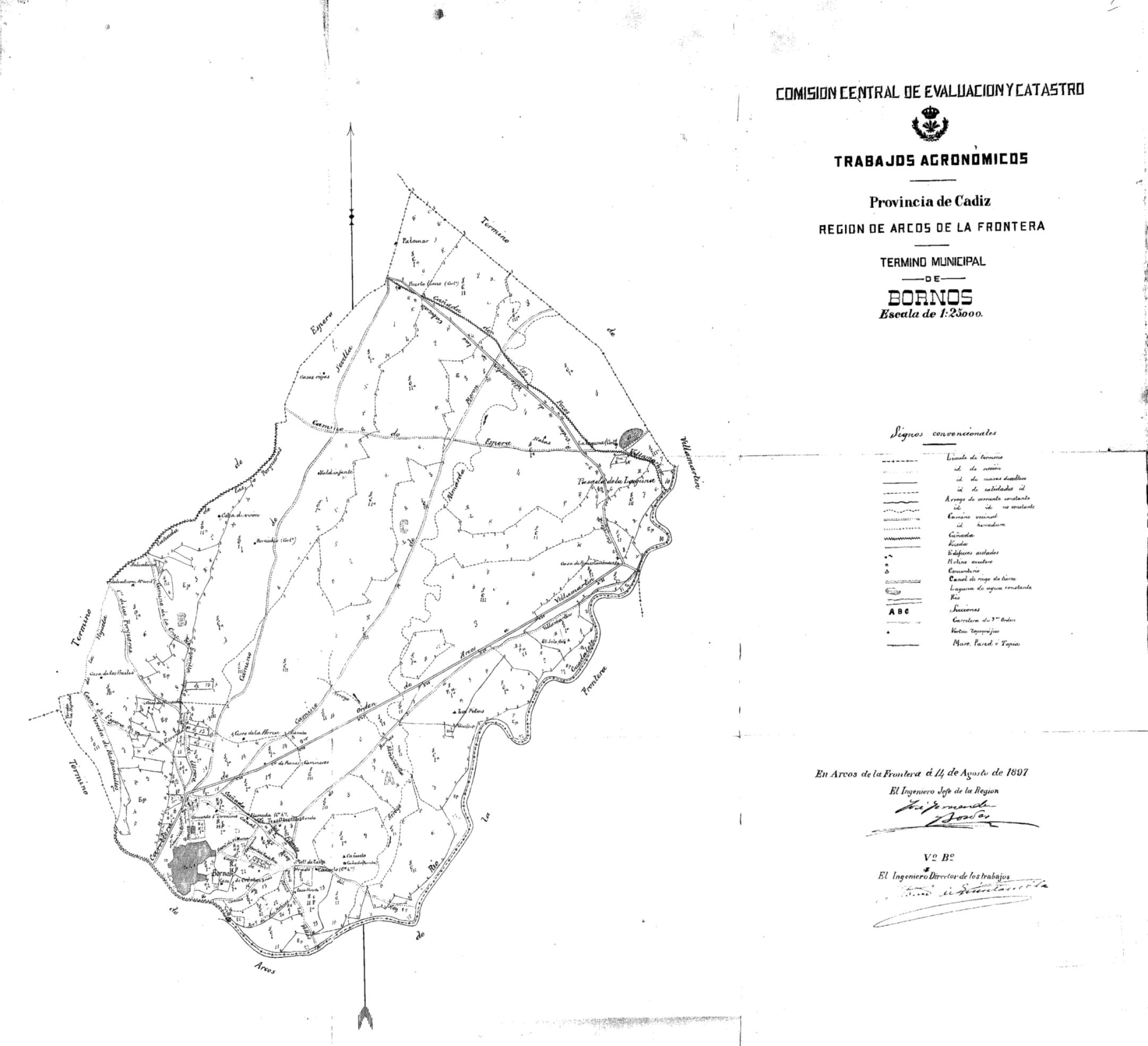 | 500 | ## | $aTérmino municipal de Bornos con distribución parcelaría. Orientación N. hacia la parte superior del plano. Al margen una leyenda con signos convencionales. |