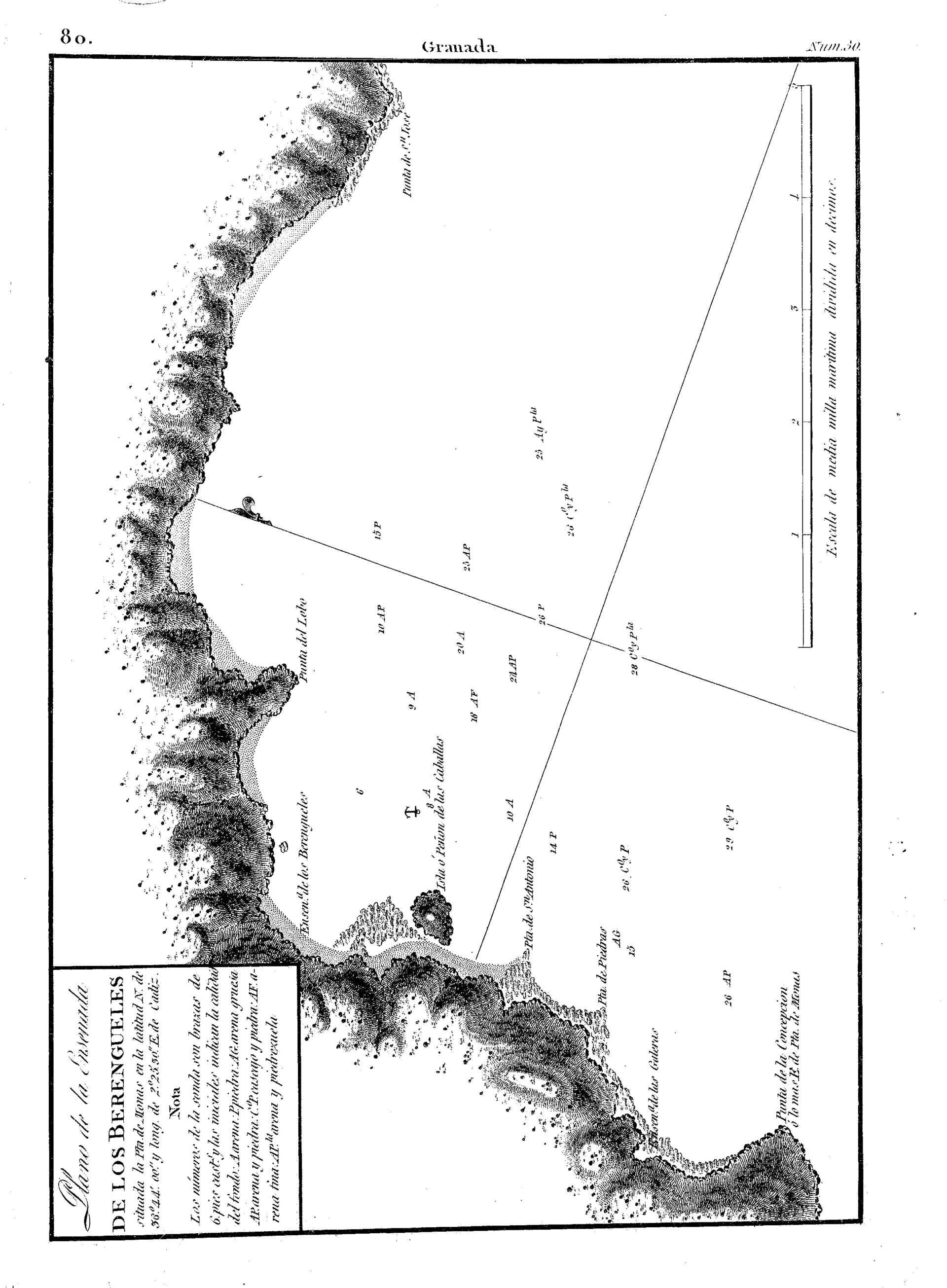 | 255 | ## | $aEscala [ca. 1:7300] Escala gráfica media milla marítima dividida en décimos [= 12,6 cm] |