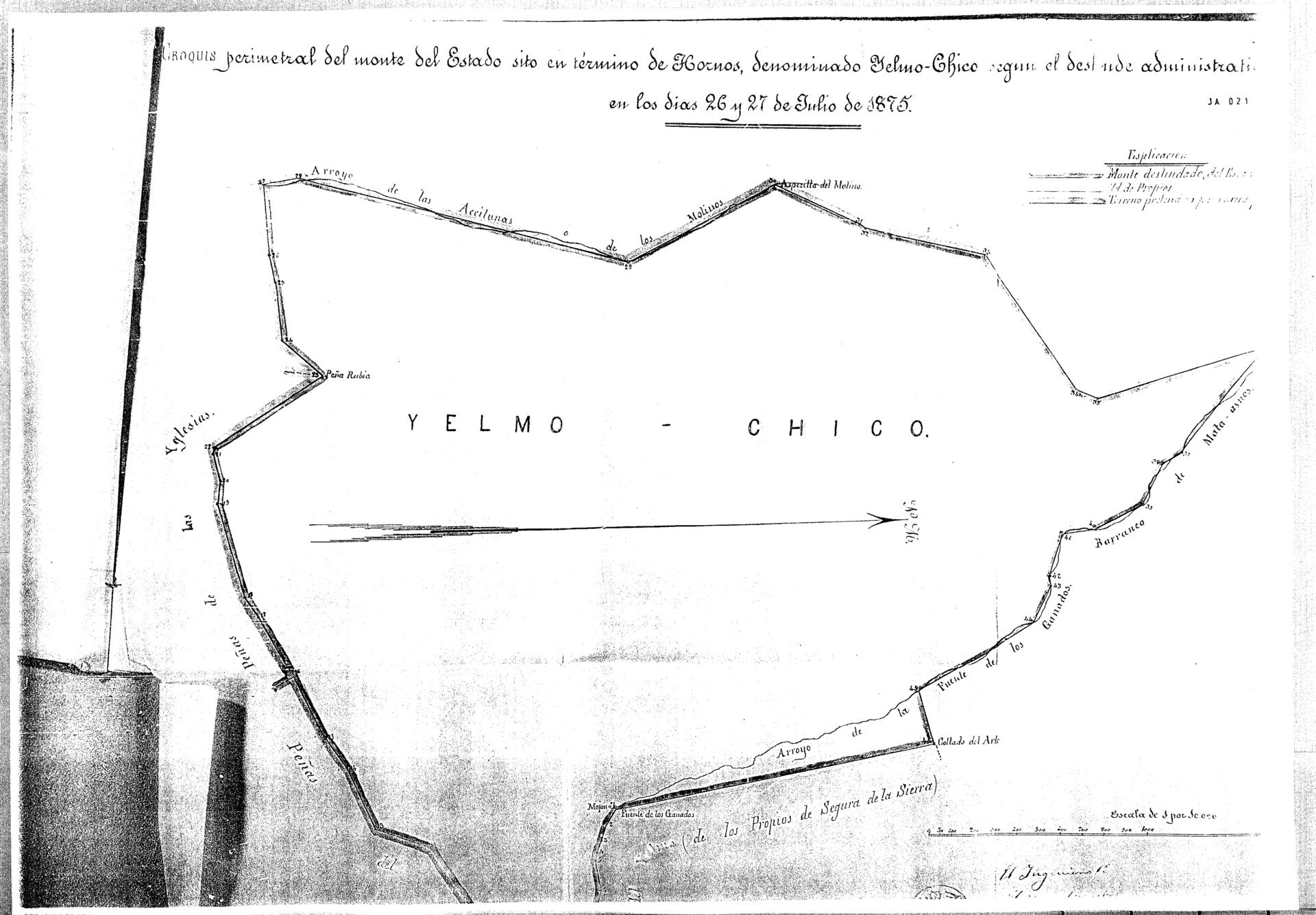| 245 | ## | $aCroquis perimetral del monte del Estado sito en término de Hornos denominado Yelmo-Chico$bsegún el deslinde administrativo practicado en los días 26 y 27 de julio de 1875$cel ingeniero 1º Isidoro Maestre |