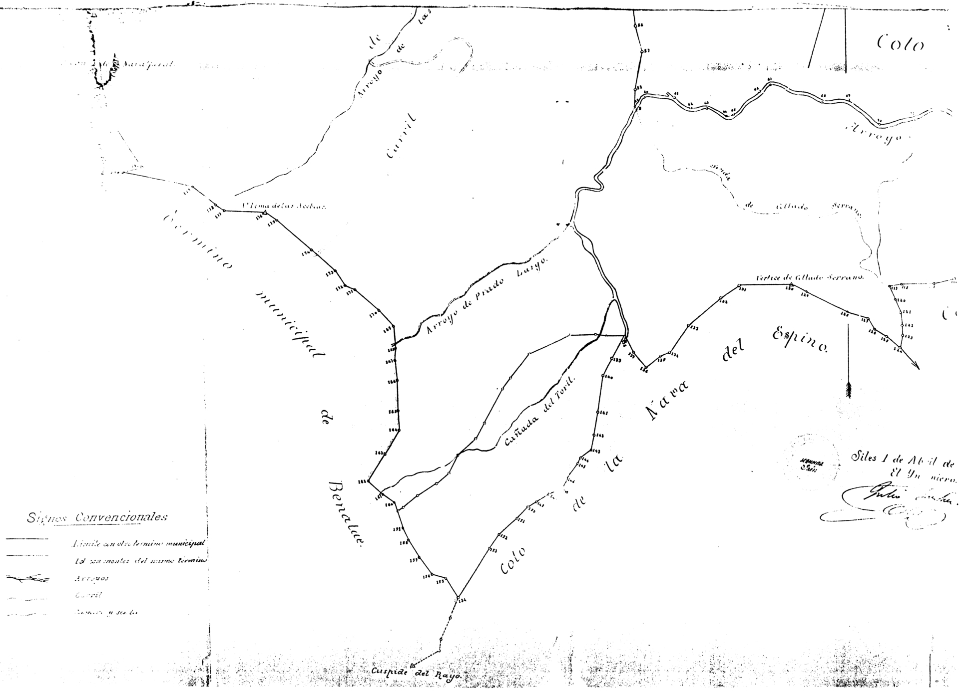 | 500 | ## | $aOrientado con flecha al norte magnético y geográfico | 500 | ## | $aFechado y firmado en Siles por el autor | 500 | ## | $aTabla de signos convencionales para indicar límites con otros términos municipales y con montes del mismo término, arroyos, carril, camino y senda | 500 | ## | $aSeñala los puntos desde donde se ha realizado el deslinde |