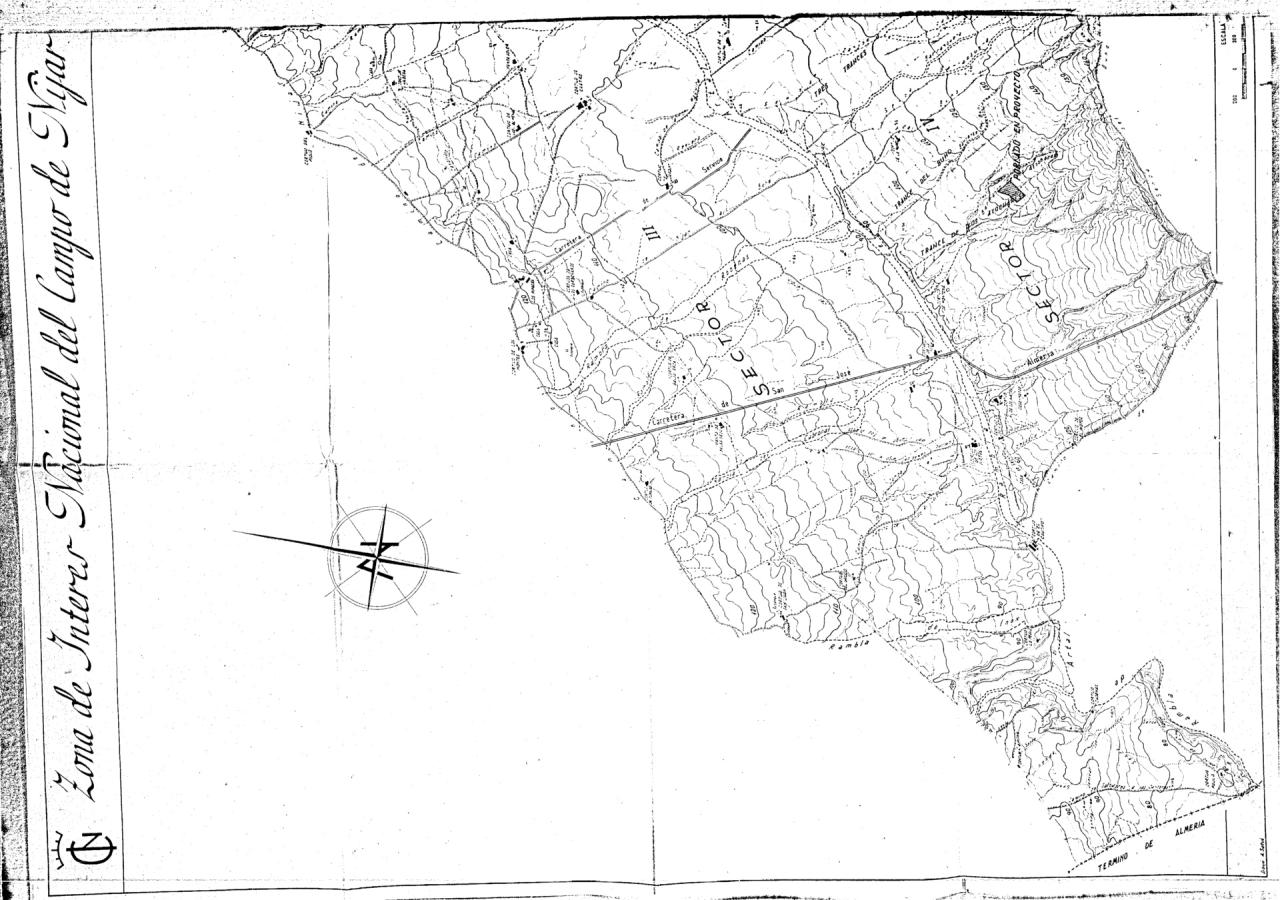 | 500 | ## | $aEscala gráfica también dada en 1000 metros. Orientado con flecha en rosa de ocho vientos | 500 | ## | $aOrografía por curvas de nivel equidistantes 2 metros | 500 | ## | $aComprende parte del término municipal de Níjar entre el camino de Níjar a Castro, el camino de las Puntas, las sendas del Buho, de la Pared y del cortijo de Mota, la rambla de Artal y el límite con el término de Almería | 500 | ## | $aDiferencia por color los distintos sectores | 500 | ## | $aSeñala, en los sectores II y IV, los proyectos de creación de poblados | 500 | ## | $aFotocopia azográfica coloreada a mano | 500 | ## | $aEn : Instituto Nacional de Colonización : "Informe sobre instalación de viviendas provisionales en los terrenos nivelados de finca los Pipaces situados en los sectores II y IV del Campo de Níjar (Almería)". 1958. Planos. N. 1 |