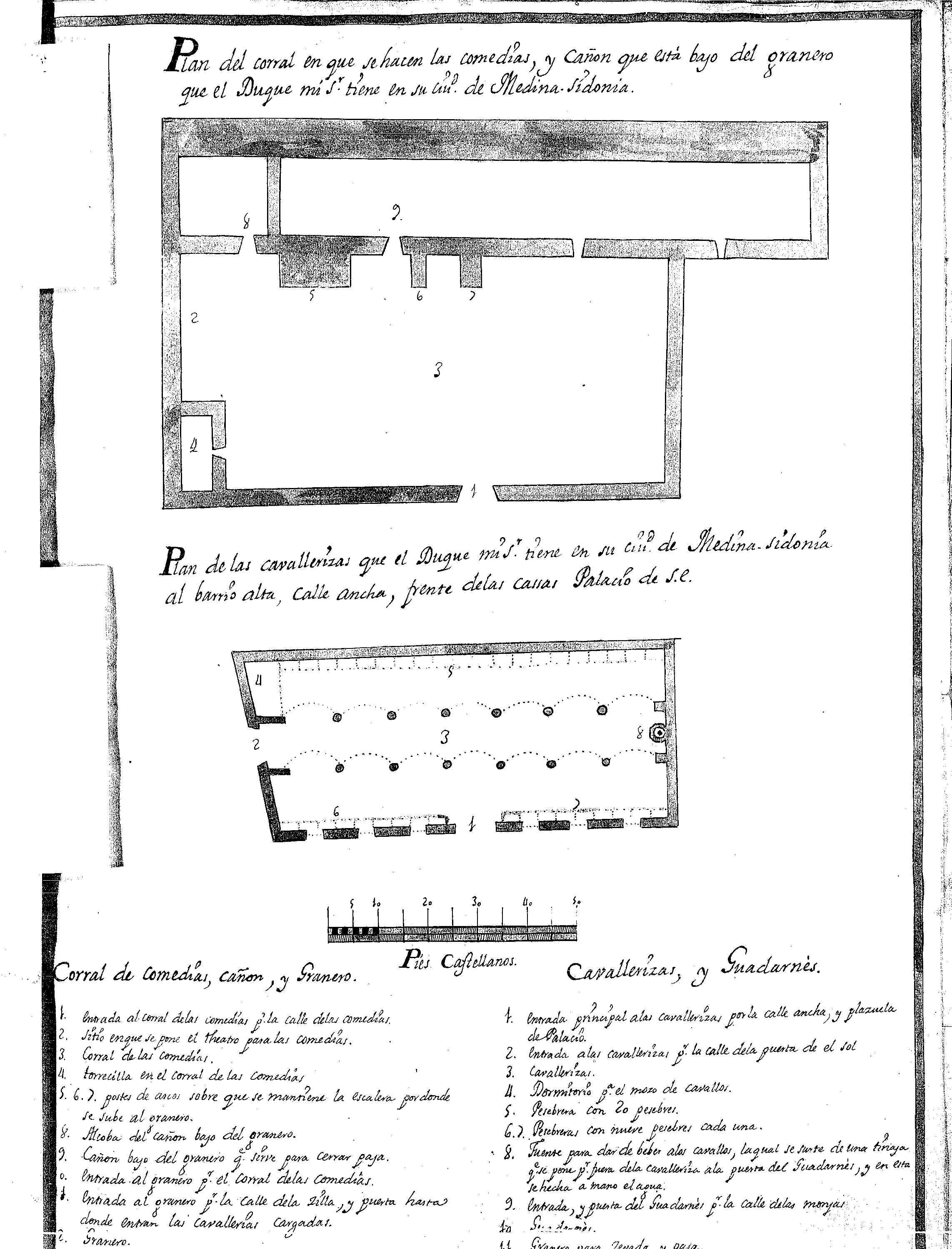 | 245 | ## | $aPlan del corral en que se hacen las comedias y cañón que está bajo del granero que el Duque mi Sr. tiene en su ciud. de Medina-Sidonia. Plan de las cavallerizas que el Duque mi Sr. tiene en su ciud. de Medina-Sidonia al barrio alta, calle Ancha, frente de las cassas Palacio de S.E. |