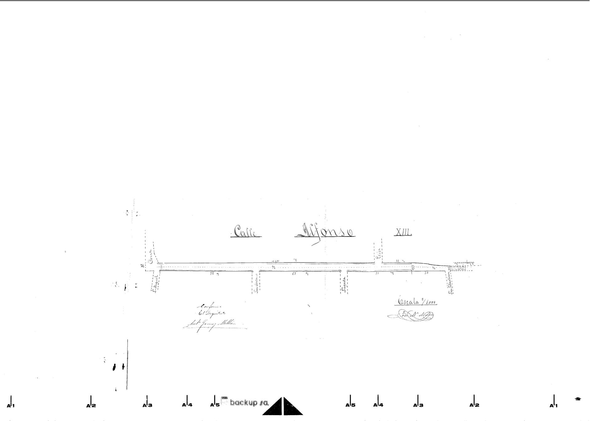 | 500 | ## | $aAparece la calle Alfonso XIII con sñalización de la zona a pavimentar del adoquinado y mediciones | 500 | ## | $aAdemás aparecen las calles colindantes como S. Miguel, San Antonio, Sagasta, San Sebastián y Ecija | 500 | ## | $aPegado en el centro | 500 | ## | $aLa escala aparece con 2:1000 |