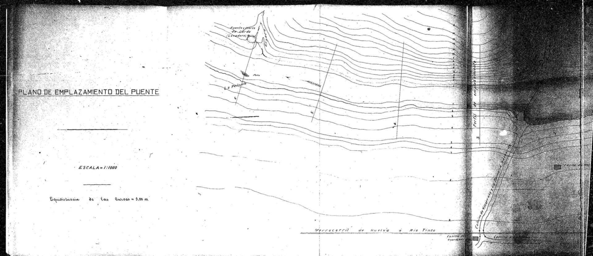 | 500 | ## | $aNo sabemos con total seguridad el municipio en que está ubicado el puente, pero creemos que es Valverde del Camino | 500 | ## | $aFirma ms. | 500 | ## | $aRecoge el río Tinto, indicando el emplazamiento del puente proyectado, y el regajo de Ardilla | 500 | ## | $aAparece el trazado de la línea del ferrocarril de Huelva a Riotinto, los caminos de Villarrasa y La Palma del Condado a Valverde, de Valverde, y de La Palma; y la situación de una presa, de la casilla del Molino, de la casilla del guardabarreras y de la fuente y charco de Curda |