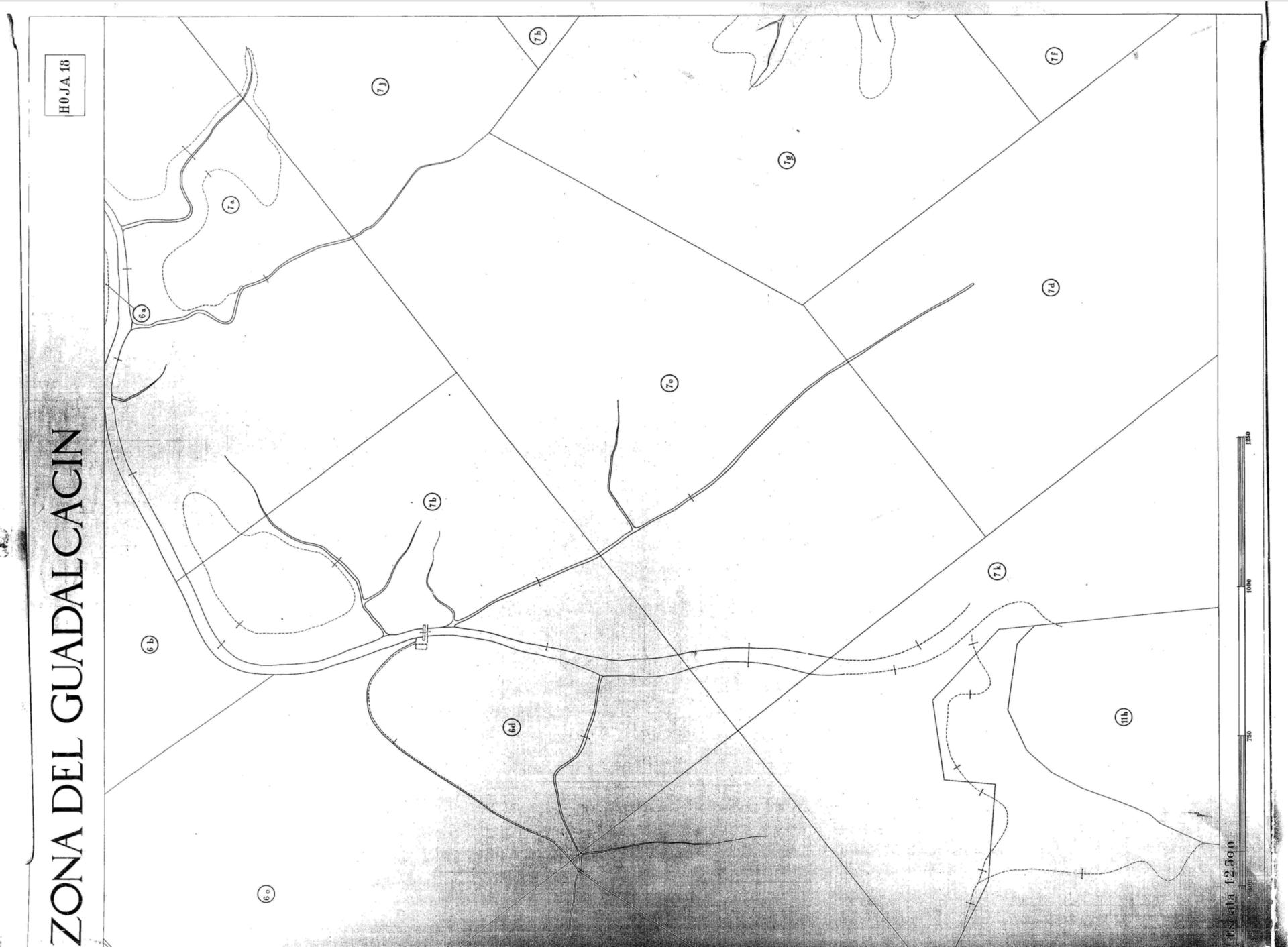 | 500 | ## | $aRecoge el río San Pedro | 500 | ## | $aDelimita la ampliación de la zona regable del Guadalcacín y la divide en parcelas identificadas numéricamente | 500 | ## | $aContiene el sello del Instituto Nacional de Colonización | 500 | ## | $aEn los fondos del mismo archivo se conserva otro ejemplar de este plano |
