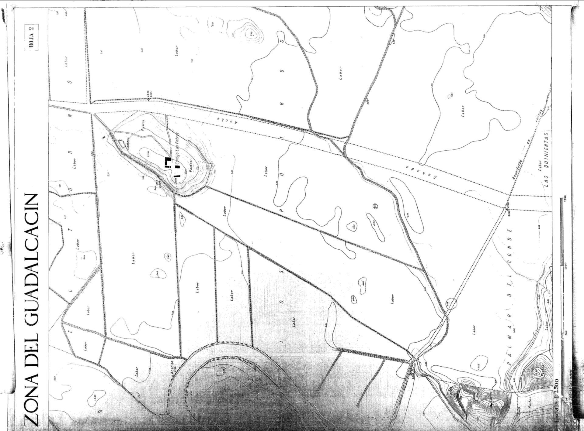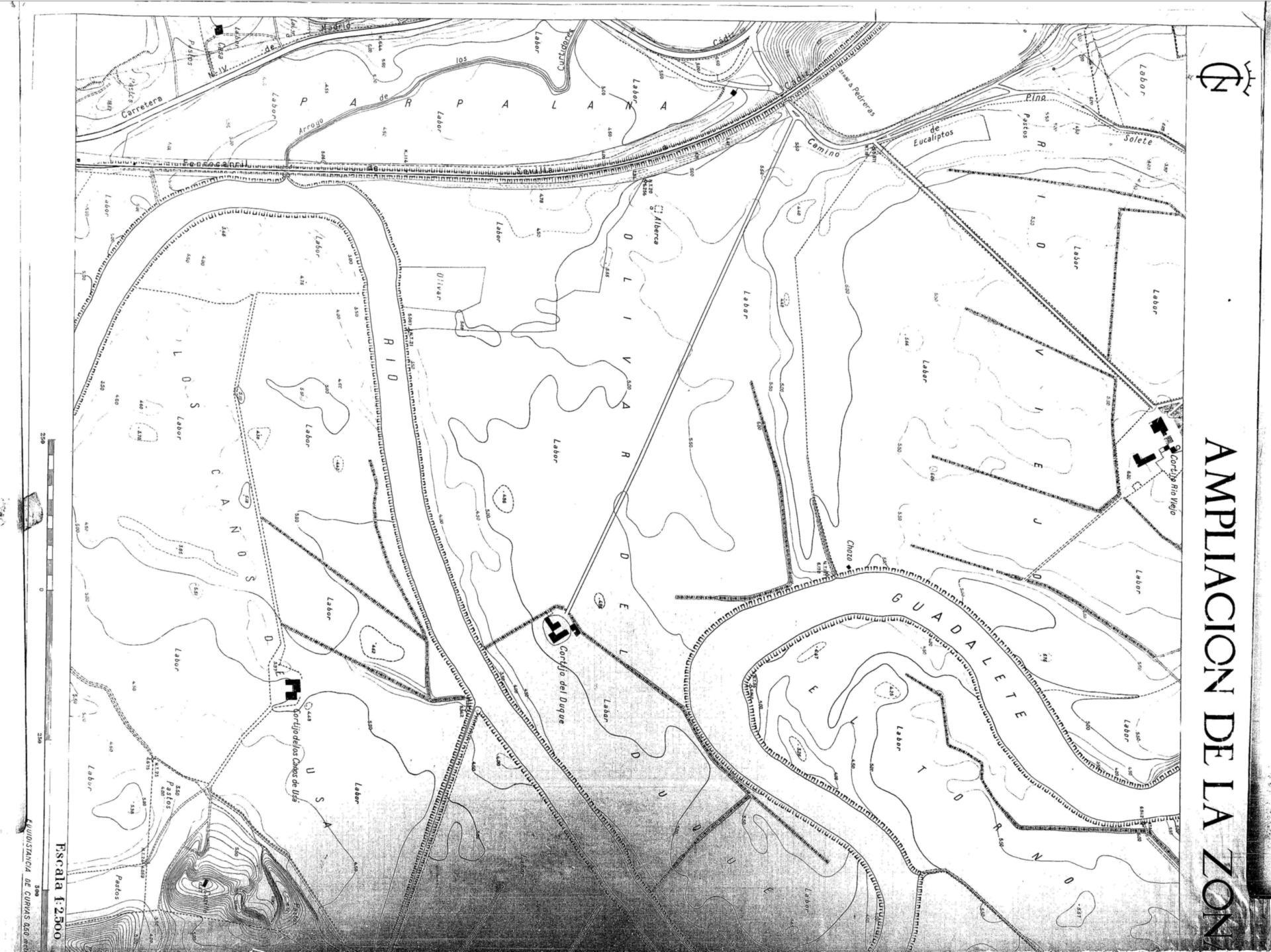 | 500 | ## | $aRecoge el río Guadalete y diversos parajes | 500 | ## | $aDelimita la ampliación de la zona regable del Guadalcacín y aparece la línea del ferrocarril Madrid-Cádiz, la carretera Madrid-Cádiz, diversos terrenos de labor, la cañada Ancha, las ruinas de un acueducto, y la situación de numerosos cortijos | 500 | ## | $aBajo la escala consta "Equidistancia de curvas 0,50 metros | 500 | ## | $aContiene el sello del Instituto Nacional de Colonización |