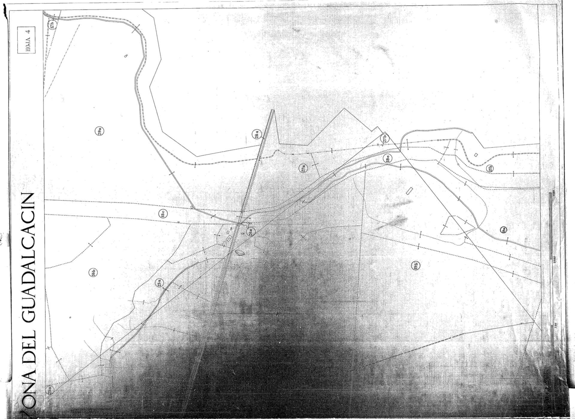 | 500 | ## | $aRecoge el río Guadalete | 500 | ## | $aDelimita la ampliación de la zona regable del Guadalcacín y la divide en parcelas identificadas numéricamente | 500 | ## | $aAparece la carretera Madrid-Cádiz y la línea del ferrocarril Madrid-Cádiz | 500 | ## | $aContiene el sello del Instituto Nacional de Colonización |