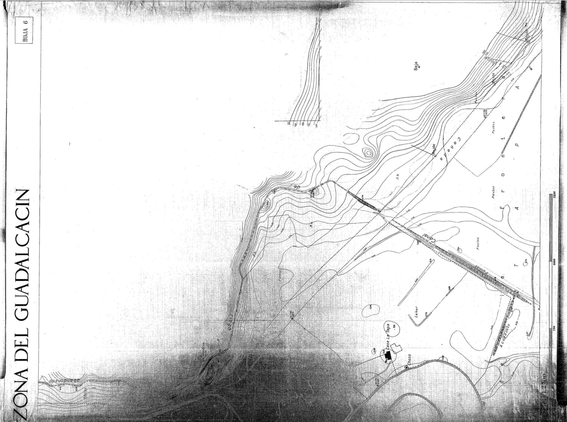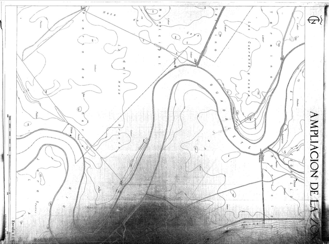 | 500 | ## | $aRecoge el río Guadalete y numerosos parajes | 500 | ## | $aDelimita la ampliación de la zona regable del Guadalcacín y aparece la cañada Ancha, un canal y las ruinas de un acueducto | 500 | ## | $aSeñala el límite entre los términos municipales de Jerez de la Frontera y El Puerto de Santa María | 500 | ## | $aBajo la escala consta "Equidistancia de curvas 0,50 metros | 500 | ## | $aContiene el sello del Instituto Nacional de Colonización |