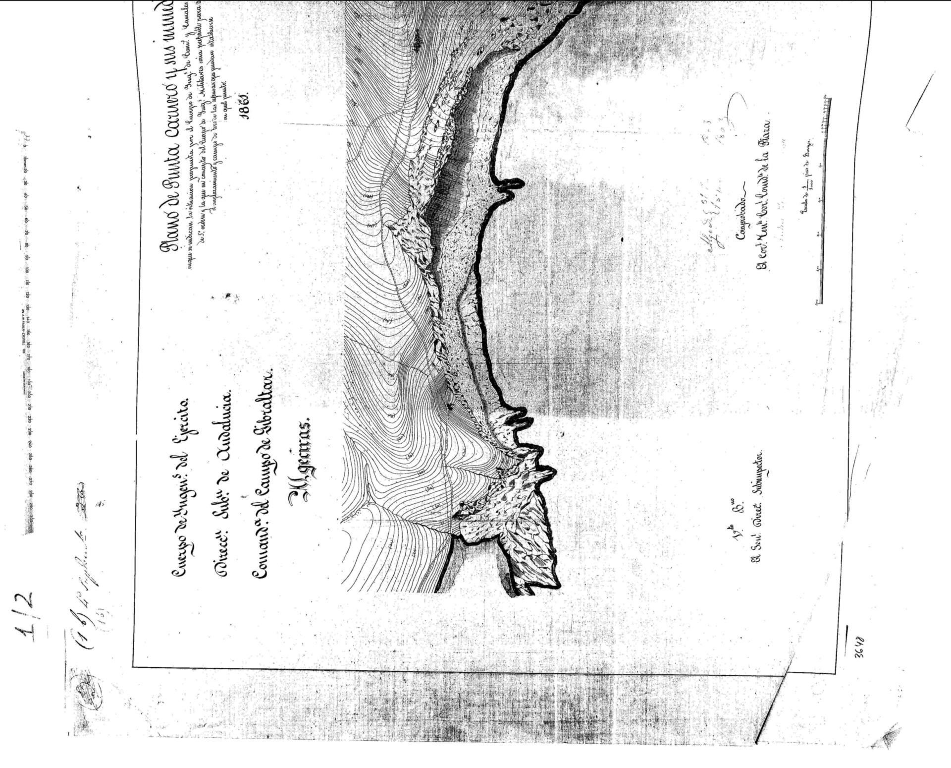 | 500 | ## | $aResto de título: "...en que se indican la situación propuesta por el Cuerpo de Ingenieros de Caminos y Canales para construir un faro de 5º orden y la que en concepto del Cuerpo de Ingenieros Militares sería preferible para dejar despejado el emplazamiento y campo de tiro de las defensas que puedan establecerse en quel (sic) punto | 500 | ## | $aFirma ms. añadida a lápiz a la antefirma; consta también la antefirma del General Director Subinspector sin firma | 500 | ## | $aAparece la Punta del Carnero, el emplazamiento del faro indicado por los ingenieros civiles y el propuesto por los ingenieros militares, la situación de las ruinas de una antigua batería y la de un fuerte proyectado | 500 | ## | $aIncluye una explicación relativa a los edificios señalados en el plano y una nota sobre los mismos, en la que se incluye la fecha Algeciras, 24 de Marzo de 1863 | 500 | ## | $aSobre la antefirma se ha anotado a lápiz "Algeciras, 31 de Julio, 1863. 18 de Marzo 1863 | 500 | ## | $aEn el ángulo superior izquierdo consta: "(3) (1b) 4º Suplemento 3 (a) (1b) |