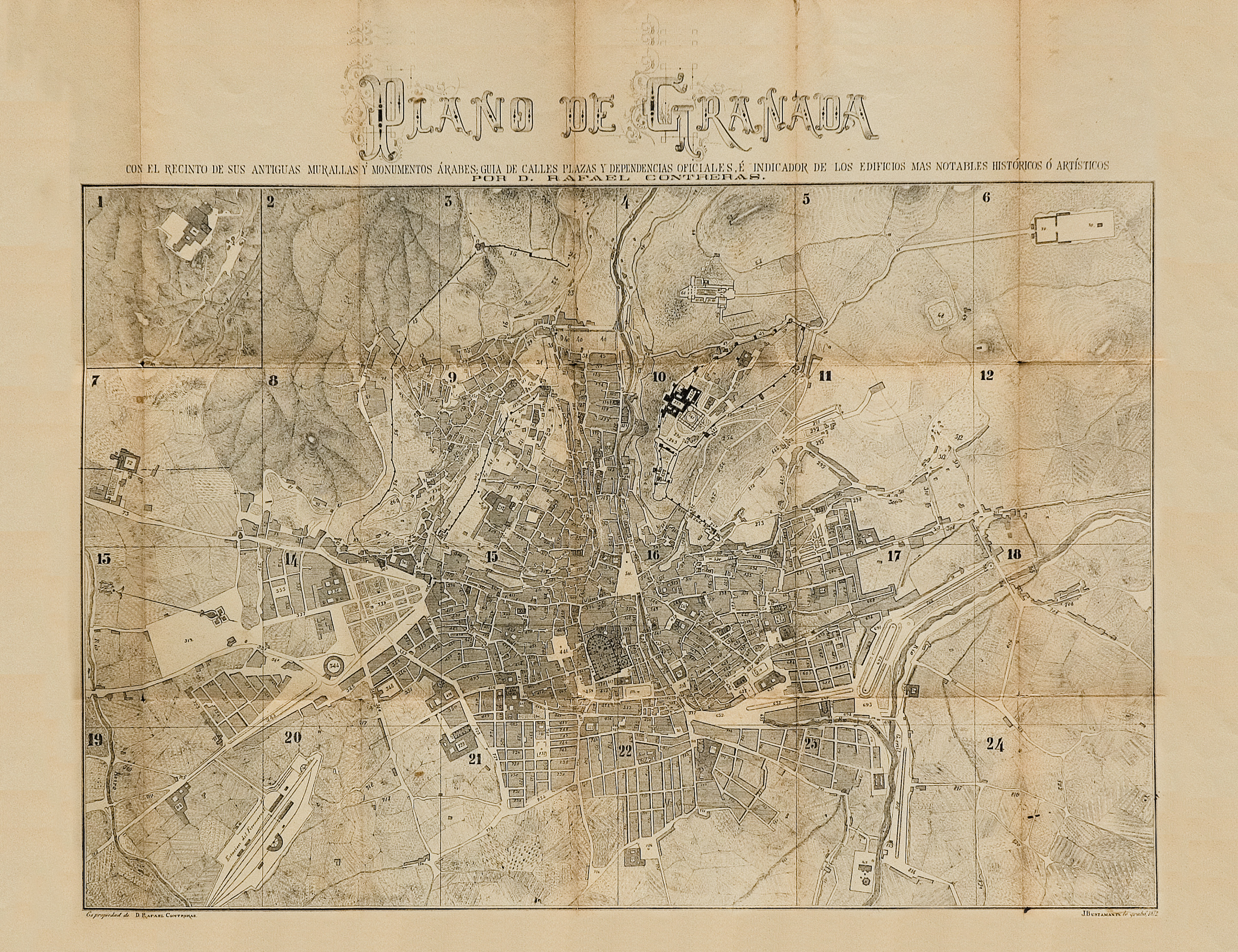 | 500 | ## | $aEl mapa presenta una división cuadricular. Cada una de las 24 cuadrículas o secciones está identificada con un número | 500 | ## | $aLa escala aproximada se ha extraído de la catalogación de los mapas del SHM | 500 | ## | $aEn el ángulo superior izquierdo aparece una ampliación de una zona del mapa | 500 | ## | $aOrografía por normales | 500 | ## | $aEn el ángulo inferior izquierdo se indica "Es propiedad de D. Rafael Contreras | 500 | ## | $aEl ejemplar del Archivo Histórico Municipal de Granada presenta sello del "Depósito General Topográfico de Ingenieros | 500 | ## | $aEn uno de los ejemplares del Servicio Histórico Militar se señala la limitación amurallada de la ciudad, con una línea roja. Estos 2 ejemplares son en color y uno de ellos está montado sobre tela | 500 | ## | $aEl ejemplar del SGE es un grabado en b/n e iluminado en color | 500 | ## | $aEl ejemplar del Palacio de Carlos V es una reproducción de 1970 en cartulina y color |