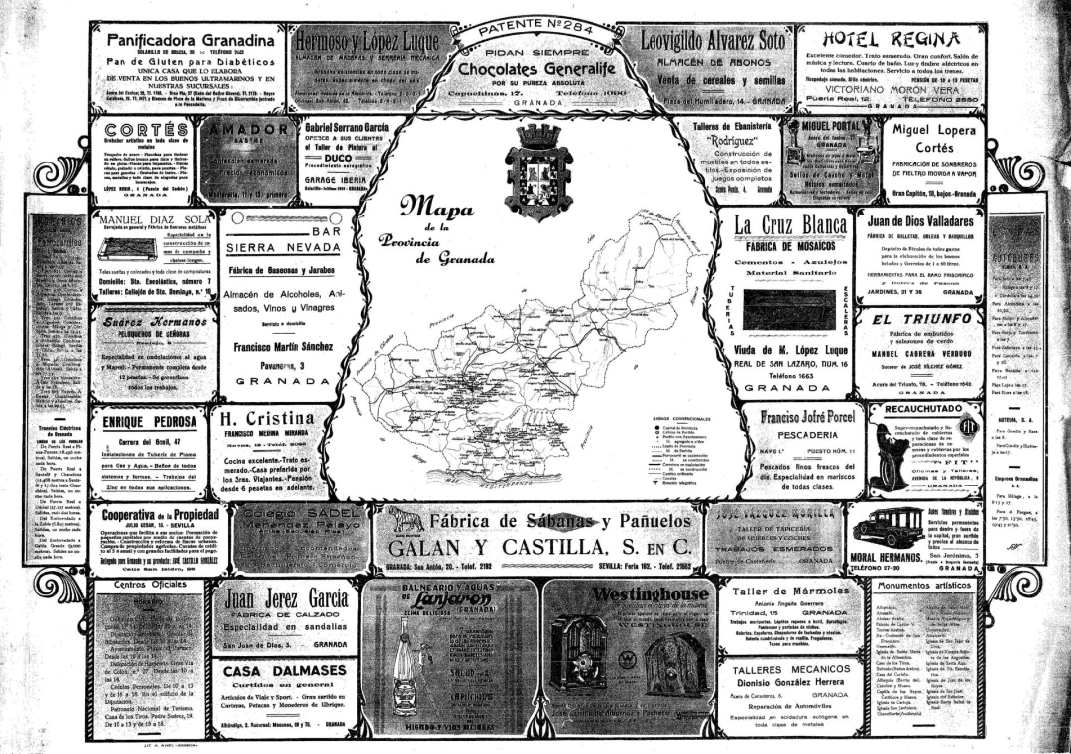 | 500 | ## | $aEl mapa se encuentra rodeado por anunciaos publicitarios de numerosas entidades comerciales e industriales | 500 | ## | $aAdemás el mapa incluye los horarios de las principales líneas de autobuses, ferrocarriles y tranvías | 500 | ## | $aTambién aparece el horario de los centros oficiales y la lista de los monumentos de la ciudad de Granada |