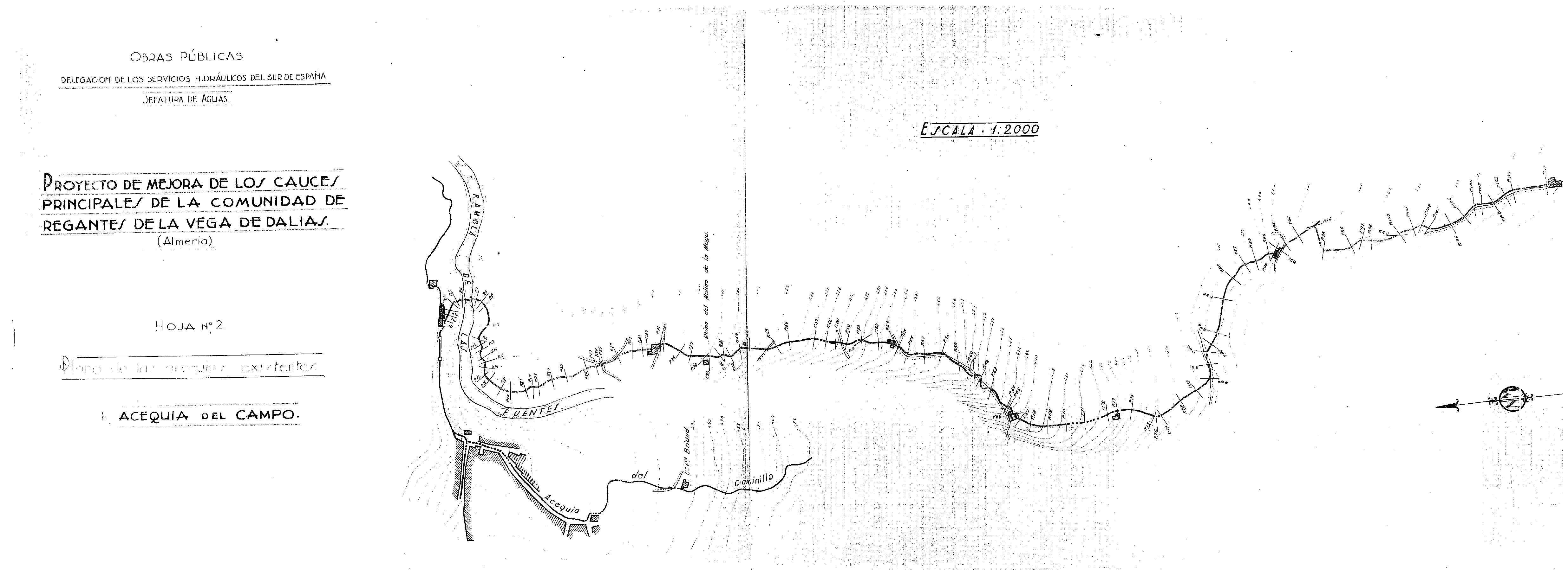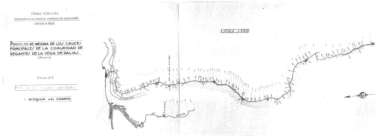| 500 | ## | $aExpediente: Secc. 1. Leg. 729-1. Estante B. Tabla Sup. 18. O.P. Delegación de los Servicios Hidráulicos del Sur de España. Jefatura de Aguas. Proyecto de mejora de los cauces principales de la Comunidad de Regantes de la Vega de Dalías (Almería). Ingeniero D. Francisco Marzo Vidaurreta. Año 1944 | 500 | ## | $aFirmas ms. | 500 | ## | $aN.M. orientado al WSW del plano | 500 | ## | $aSe ven las ramblas de las Fuentes, de Castillo y de Boquerón | 500 | ## | $aAparece parte del núcleo urbano de Dalías, acequias, cortijos, la ruina del Molino de la Muga, la carretera de almería a Berja, la venta de Antoñín y la mejora proyectada | 500 | ## | $aTiene el sello de la División Hidráulica del Sur de España. Málaga |