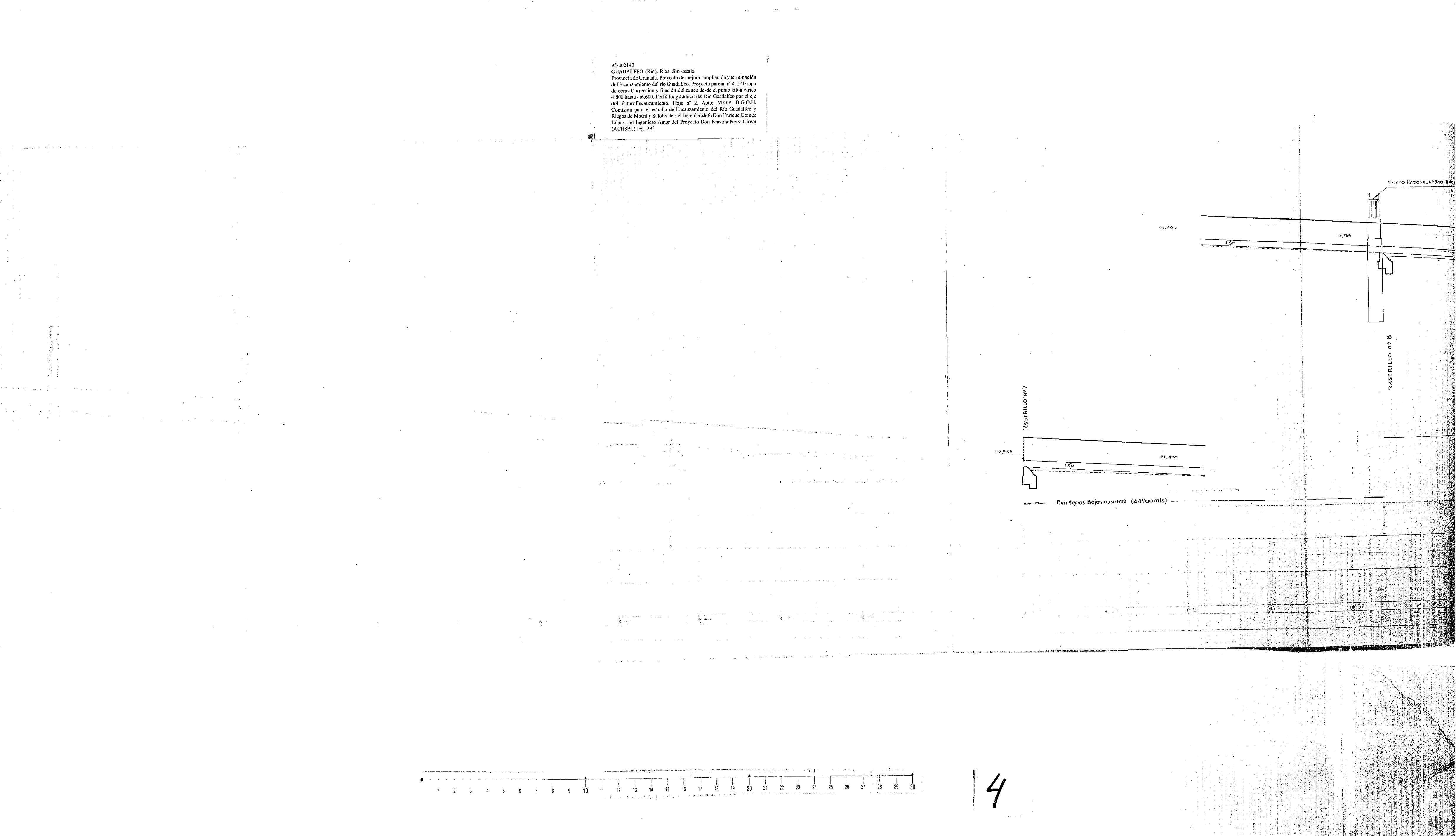 | 500 | ## | $aExpediente: Secc. 1. Leg. 295. Estante M. Tabla 1-8. M.O.P. D.G.O.H. Comisión para el Encauzamiento del Río Guadalfeo y Riegos de Motril y Salobreña. Provincia de Granada. Proyecto de mejora, ampliación y terminación del Encauzamiento del río Guadalfeo. Proyecto parcial nº 4. 2º grupo de obras. Corrección y fijación del cauce desde el punto kilométrico 4,810 hasta el 6,628. Ingeniero Autor del Proyecto D. Faustino Pérez-Cirera. Año 1946 | 500 | ## | $aFirmas ms. | 500 | ## | $aSe ve el mar Mediterráneo, el río Guadalfeo, la máxima marea y el tjo de los Vados | 500 | ## | $aAparece el perfil, el nivel mínimo para las riberas, galerías, la presa de Motril y Salobreña, desagües, canales, cadenas, muros, rápidos, diques, el camino de Santa Ana, rastrillos, cauces, entraderos, un puente metálico, el C.N. Nº 340 y el final del rompeolas | 500 | ## | $aTiene el sello del M.O.P. Comisión para el encauzamiento del Río Guadalfeo y Riegos de Motril y Salobreña |
