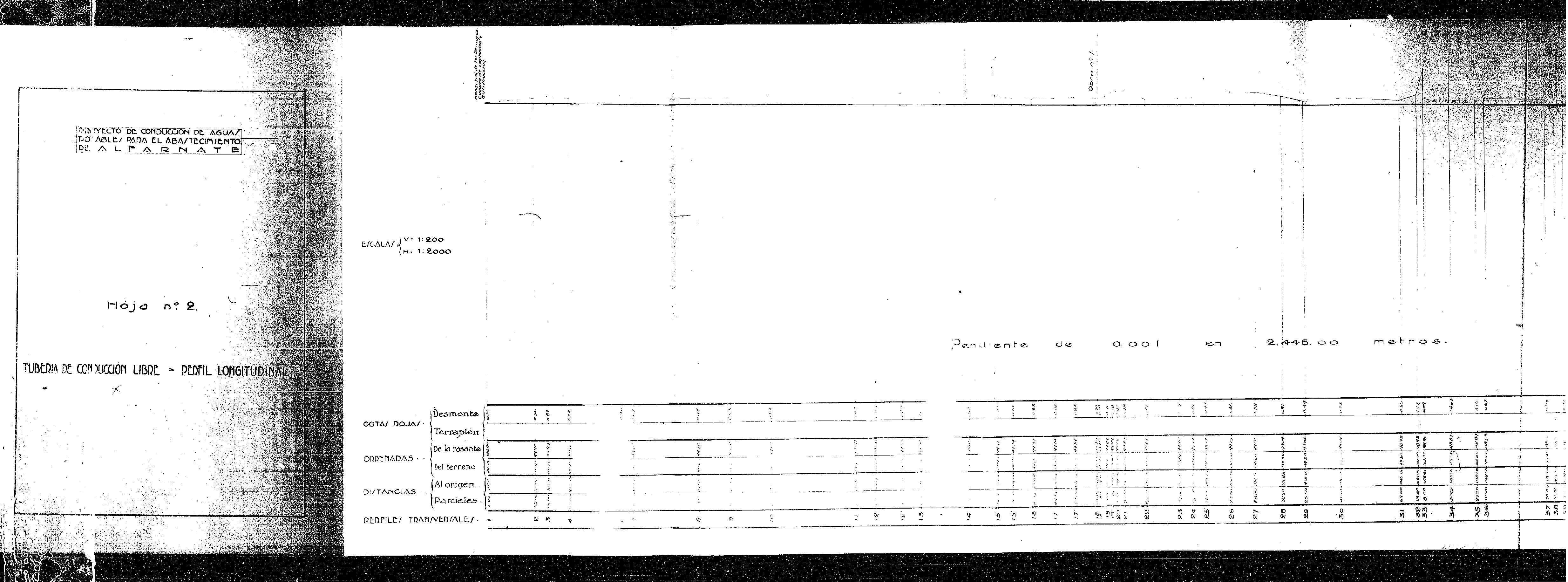 | 500 | ## | $aExpediente: Secc. 1. Leg. 554-1. Estante B. Tabla B-8. O.P. División Hidráulica del Sur de España. Proyecto de conducción de aguas potables para el abastecimiento de Alfarnate (Málaga). Ingeniero D. Juan Brotons Acuña. Año 1930 | 500 | ## | $aFirmas ms. | 500 | ## | $aSe ve el manantial de los Dornajos, depresiones, cañadas y cañadillas | 500 | ## | $aAparece el perfil, la cámara de captación y distribución, obras, pasos y una galería | 500 | ## | $aTiene el sello de O.P. División Hidráulica del Sur de España | 500 | ## | $aNotas del AGA: En : España. Ministerio de Obras Públicas. División Hidráulica del Sur de España : "Proyecto de conducción de aguas potables para el abastecimiento de Alfarnate". 1930. Planos. N. 2 ; Dibujado en tinta roja y negra ; Sello estampado de "Obras Públicas. División Hidráulica del Sur de España | 500 | ## | $aVersión original del AGA: 1 perfil, col., 30,8 x 167,5 cm, pleg. en 30,8 x 22,0 cm |