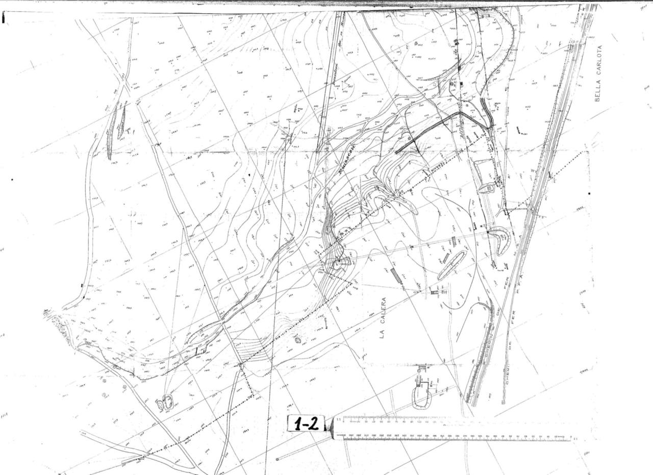 | 500 | ## | $aSe trata de un plano minero de parte del término municipal de Peñarroya | 500 | ## | $aRealizado sobre cuadrículas locales de 100 unidades | 500 | ## | $aSin flecha de orientación | 500 | ## | $aAparecen: el arroyo de la Hontanilla, la carretera de la estación al pueblo, los ferrocarriles de la M.Z.A, de Peñarroya y de P.F.A, la desviación del arroyo, una fábrica textil, el límite de los terrenos de la S.M.M.P, un camino antíguo, estaciones, numerosos mojones, la subestación eléctrica, edifícios, triangulaciones, postes, fuentes, las líneas de afloramientos, terraplenes, ángulo, rádios, el pozo Santa Rosa con su nivel 459 y otro sin denominar y las concesiones mineras de Santa Rosa, Bella Carlota y La Calera | 500 | ## | $aCon curvas de nivel equidistantes 1 metro | 500 | ## | $aEn rojo se representa la desviación del arroyo de la Hontanilla | 500 | ## | $aPresenta anotaciones a lápiz | 500 | ## | $aRealizado en dos trozos pegados con fixo | 500 | ## | $aEl mapa se encuentra roto |