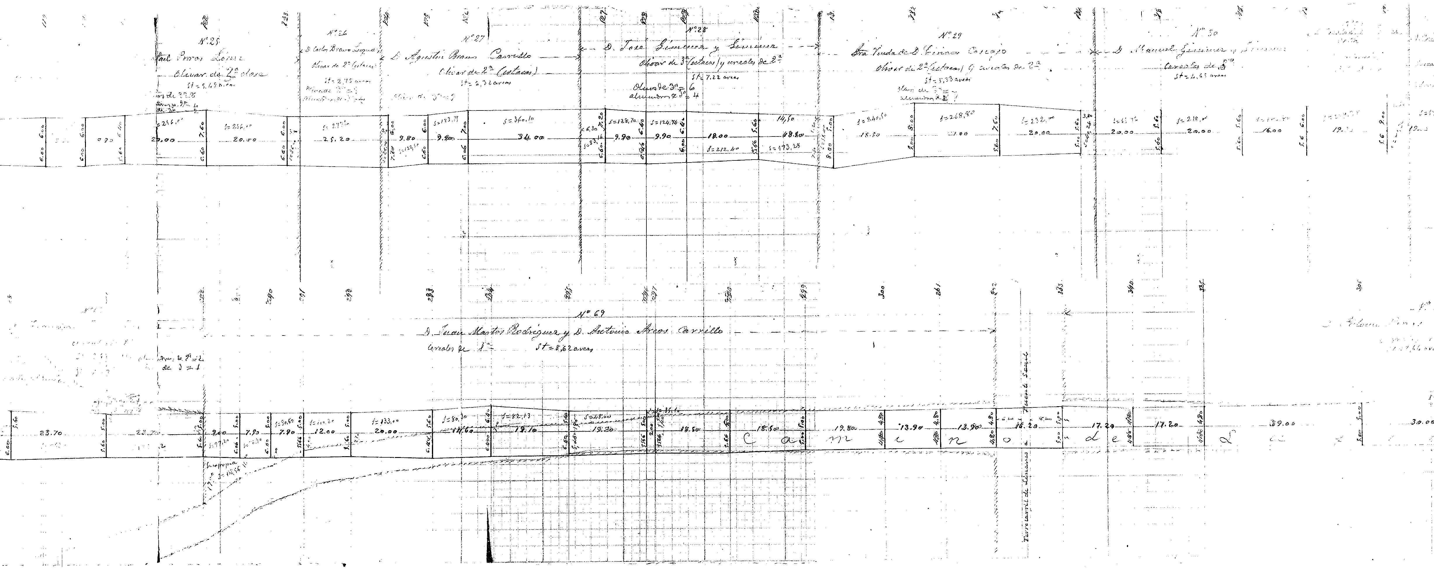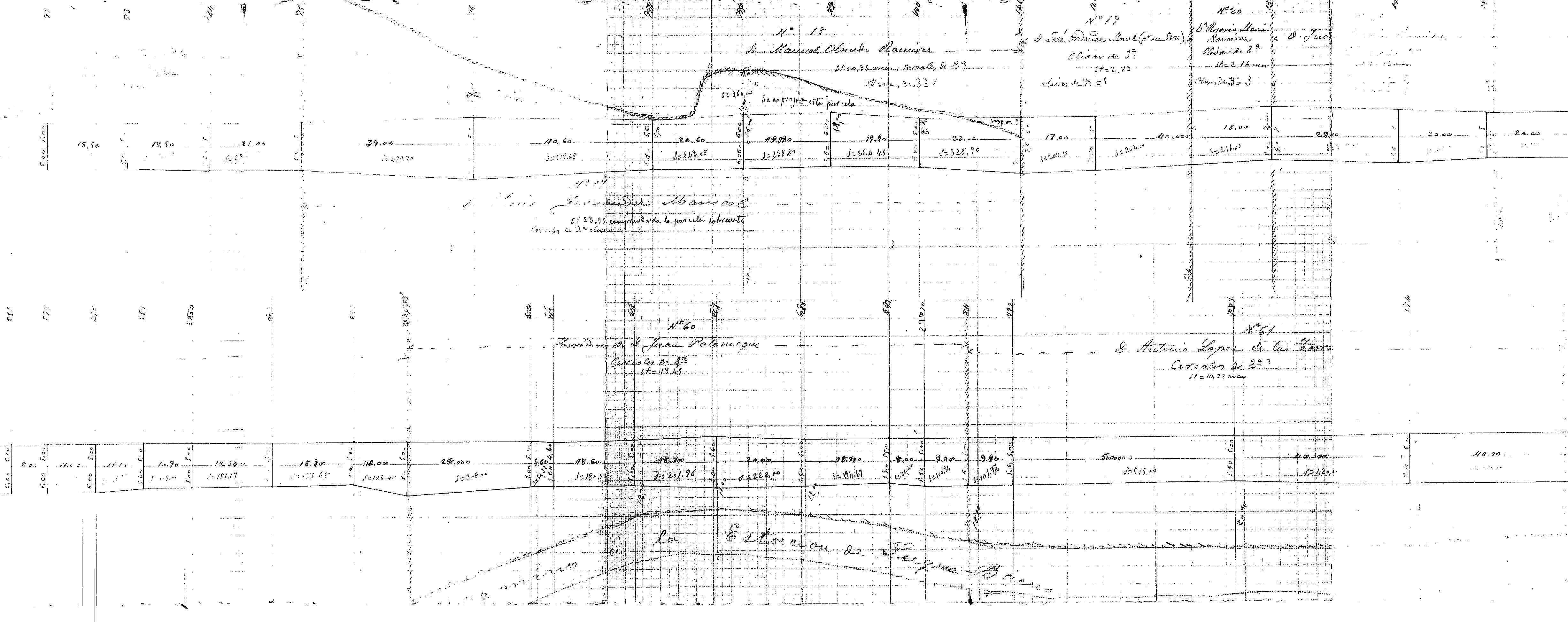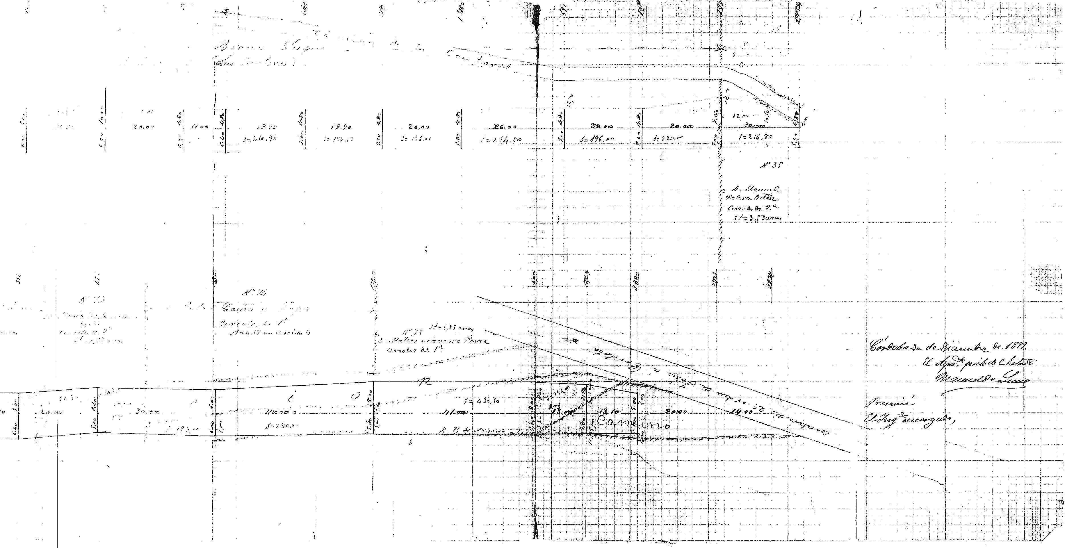 | 500 | ## | $aSe trata de un plano parcelario de los terrenos a expropiar para la construcción del trozo 2o de la carretera de La Mojonera de Luque a la carretera de Jaén a Córdoba | 500 | ## | $aSin flecha de orientación | 500 | ## | $aAparece: caminos de Marbella, de Los Alamillos, de Cantares, de Baena a la Fuente de Luque, al cementerio, del Pozo Cortés, de La Veguilla y de Córdoba, carretera de Jaén a Córdoba, lindes, fincas y la carretera en proyecto | 500 | ## | $aAngulo inferior izquierdo con la escala expresada en 1/400 y la nota: copiado | 500 | ## | $aRealizado en dos secciones debido a la falta de espacio | 500 | ## | $aA lo largo del trazado encontramos numerosas medidas y anotaciones a lápiz | 500 | ## | $aEncontramos las parcelas a expropiar numeradas, con el nombre de sus propietarios, el cultivo y su superficie | 500 | ## | $aAngulo inferior derecho con lugar, fecha y firma: Córdoba 30 de Diciembre de 1899; fdo. el Ayudante Perito del Estado Manuel de Luna; presenció el Ingeniero Encargado (sin firma) | 500 | ## | $aEn el reverso de la hoja aparece una nota con el título | 500 | ## | $aPresenta adjunto el expediente de dicha carretera |