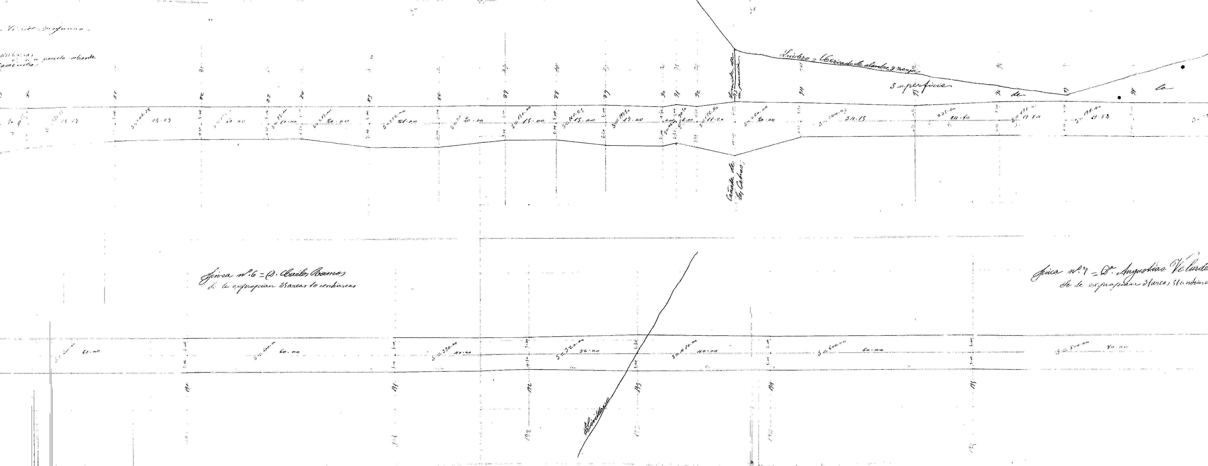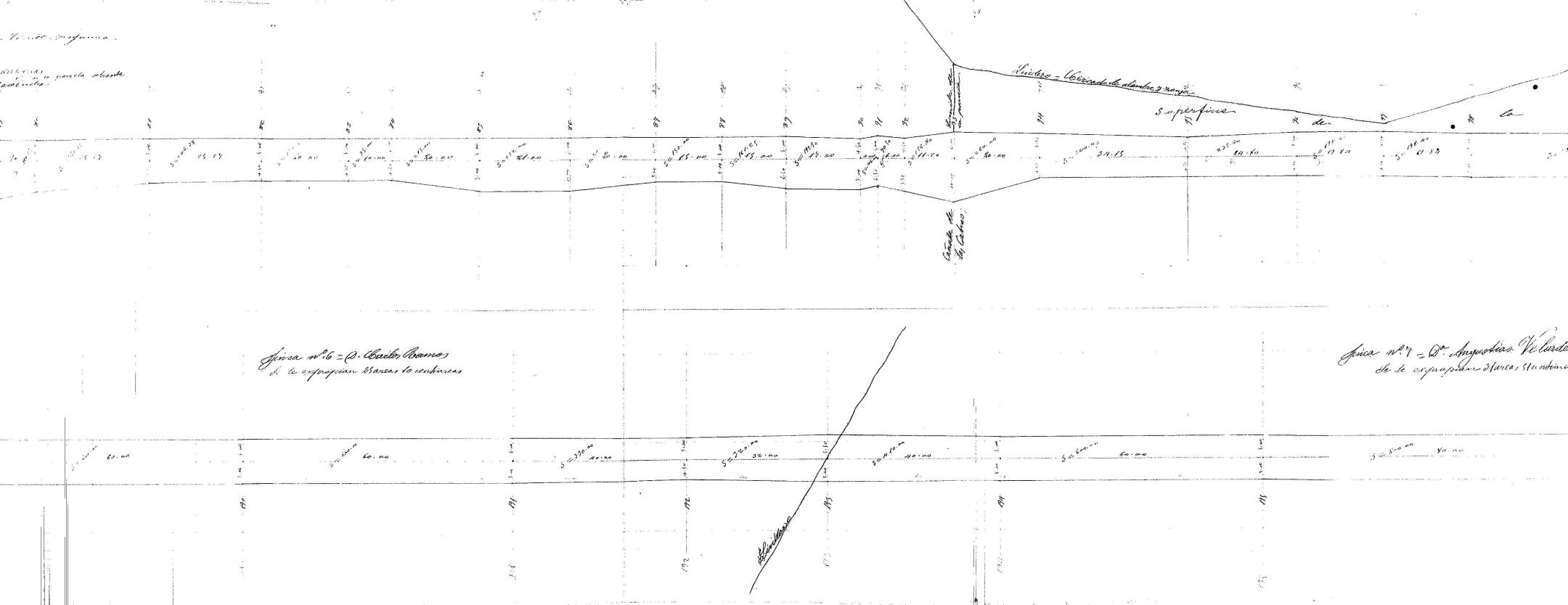 | 500 | ## | $aSe trata de un plano parcelario de los terrenos a expropiar para la contrucción del trozo 1o de la carretera de la Estación de Palma del Río a la de Fuente Obejuna al Castillo de Las Guardas | 500 | ## | $aSin flecha de orientación | 500 | ## | $aAparece: la carretera de Palma a Ecija, lindes, servidumbres, vía férrea, cerca, casilla, camino a Hornachuelos, regajo de Belén, cañada de Las Cabras, zanjas, regajo de La Higuera, arroyo de Vida, pozo, arroyo Mahoma, cañadas y la carretera en proyecto | 500 | ## | $aRealizado en dos secciones debido a la falta de espacio | 500 | ## | $aA lo largo del trazado encontramos numerosas medidas y anotaciones a lápiz | 500 | ## | $aEncontramos las parcelas a expropiar numeradas, con el nombre de sus propietarios y superficie ocupada | 500 | ## | $aEn el angulo inferior derecho y en el centro de la hoja aparece el lugar, fecha y firma: Córdoba 10 de Agosto de 1899; fdo. el Ayudante Perito en representación del Estado Francisco J. Molina; los peritos de los particulares Casto Milla y Ramos y José María Fernández y Falder y presenció las operaciones el Ingeniero (sin firma) | 500 | ## | $aPresenta adjunto el expediente |