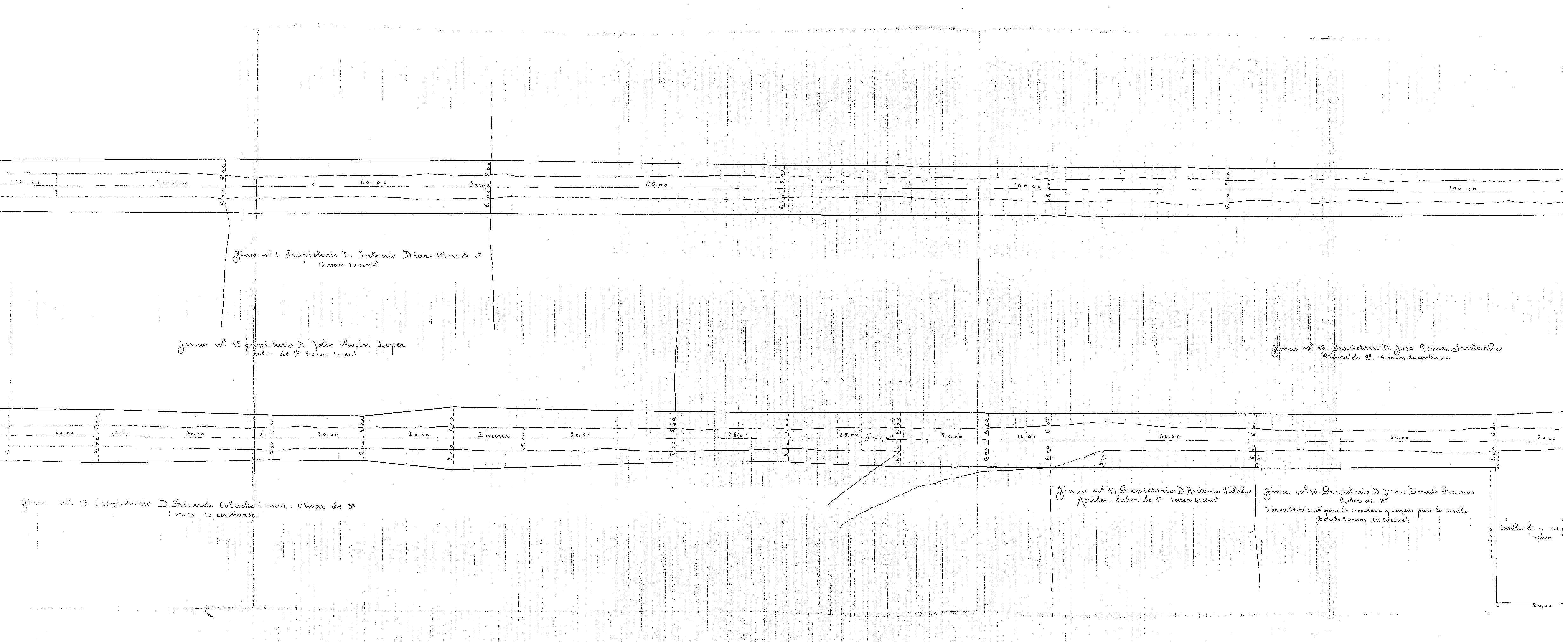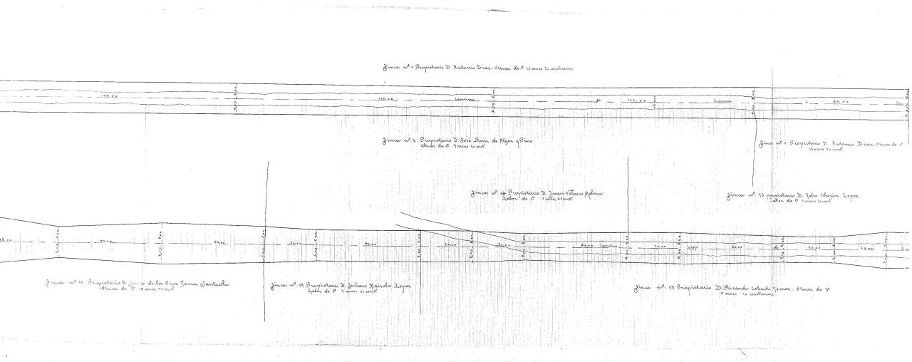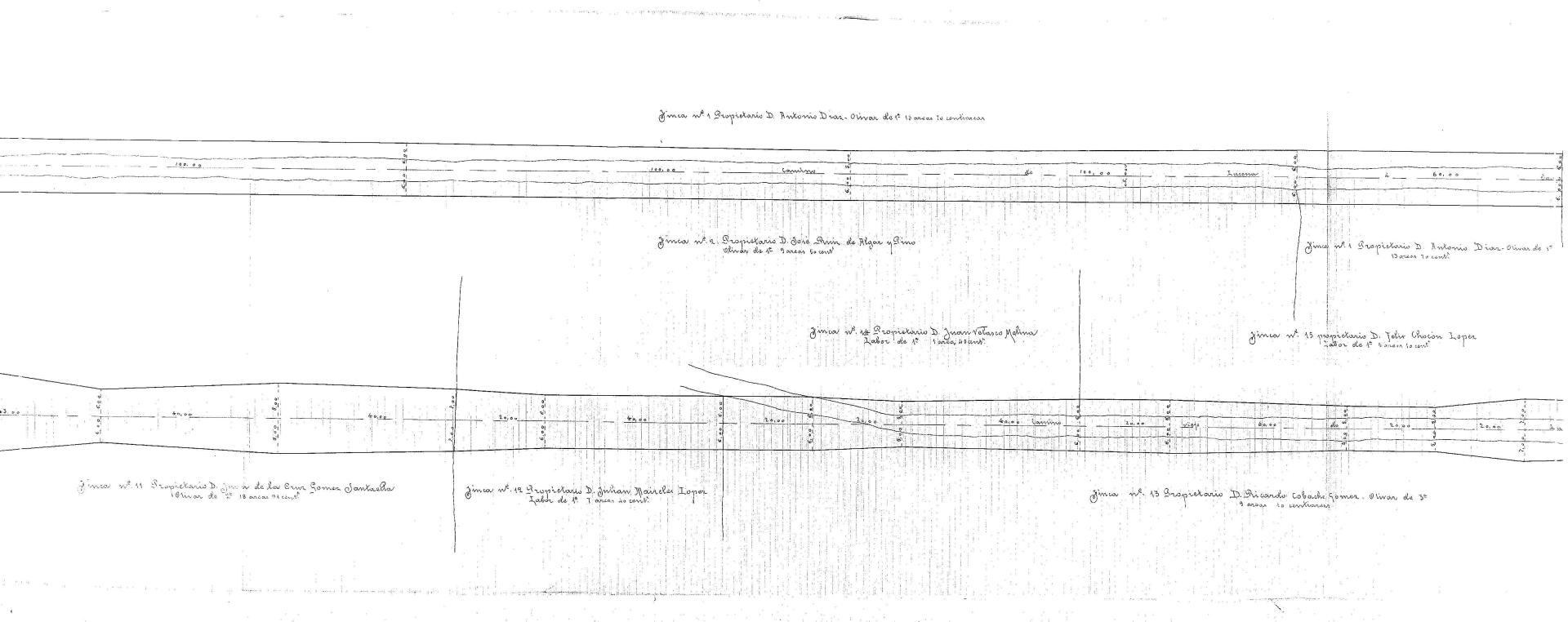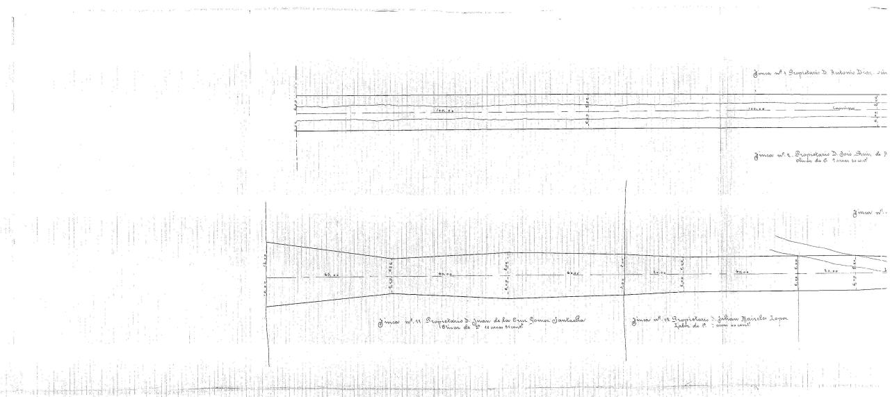 | 500 | ## | $aSe trata de un plano parcelario de los terrenos a expropiar para la construcción del trozo 3o de la carretera de Lucena a Estepa por Jauja | 500 | ## | $aRealizado en dos secciones debido a la falta de espacio | 500 | ## | $aSin flecha de orientación | 500 | ## | $aAparece: el camino de Lucena a Jauja, linderos, camino de Lucena a Estepa, fincas, casa de peones camineros y la carretera en proyecto | 500 | ## | $aEn la misma hoja se representan varias plantas y secciones de casas | 500 | ## | $aEn el trazado encontramos numerosas medidas y anotaciones | 500 | ## | $aEncontramos las parcelas a expropiar numeradas, con el nombre de sus propietarios, el cultivo y superficie ocupada | 500 | ## | $aAngulo inferior derecho con lugar, fecha y firma: Córdoba 30 de Noviembre de 1912; fdo. el Perito del Estado Juan Azcue; presenció el Ingeniero Encargado Félix Ramírez Doreste y la nota "es copia | 500 | ## | $aPresenta cosido el expediente | 500 | ## | $aEl mapa se encuentra manchado de humedad |
