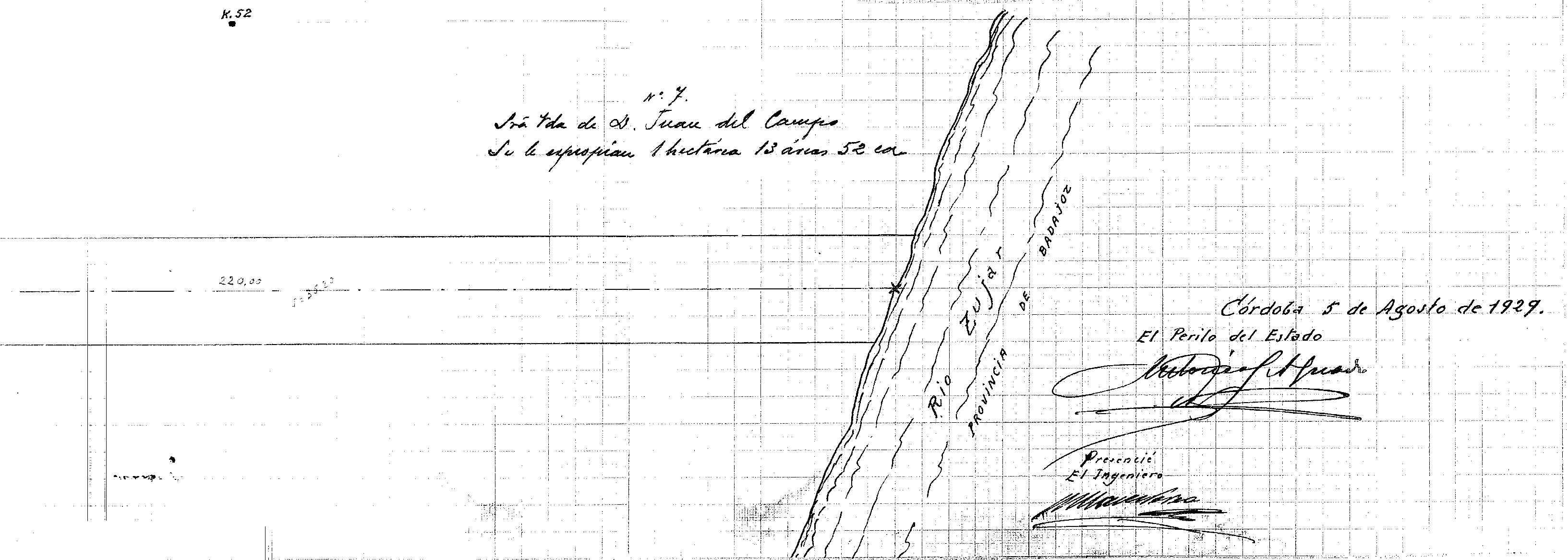 | 500 | ## | $aSe trata de un plano parcelario de los terrenos a expropiar para la construcción del trozo 5o de la carretera de Belmez a Cabeza de Buey | 500 | ## | $aSin flecha de orientación | 500 | ## | $aAparece: carretera de Villanueva del Duque a la Estación de Belalcázar, linderos, fincas, casilla, río Zújar, límite con la provincia de Badajoz y la carretera en proyecto | 500 | ## | $aEn el trazado encontramos numerosas medidas y anotaciones | 500 | ## | $aEncontramos las parcelas a expropiar numeradas, con el nombre de sus propietarios y superficie ocupada | 500 | ## | $aAngulo inferior derecho con lugar, fecha y firma: Córdoba 5 de Agosto de 1929; fdo. el Perito del Estado Antonio G Aguado; presenció el Ingeniero R Blasco Perea | 500 | ## | $aMargen izquierdo con la longitud total del tramo | 500 | ## | $aFormado por varios pliegos de papel pegados entre sí | 500 | ## | $aPresenta adjunto el expediente |