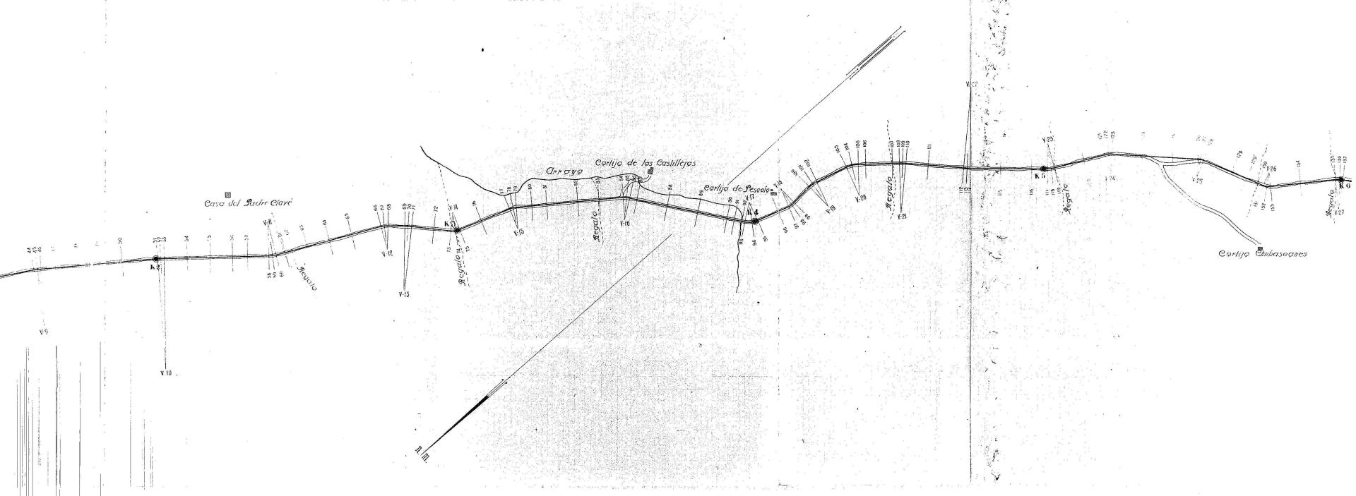 | 500 | ## | $aAtravesado por una flecha de orientación NM señalando al SW | 500 | ## | $aAparece: parte del núcleo urbano de El Carpio, camino vecinal del Carpio a la carretera de Castro a Bujalance, arroyo Gálvez, arroyo de Las Piedras, casa del Padre Clavé, regatos, cortijo de Los Castillejos, cortijo de Pesedo, cortijo Chubascones, cortijo Harinero, camino de Bujalance a Córdoba, zonas de extracción del material y camino vecinal en proyecto | 500 | ## | $aA lo largo del trazado encontramos numerosas medidas, distancias kilométricas y perfiles transversales numerados y desarrollados en otras hojas | 500 | ## | $aAngulo inferior derecho con lugar, fecha y firma: Córdoba Julio de 1934; fdo el Ingeniero autor del proyecto J Jiménez de la Cruz; examinado del Ingeniero Director J Jiménez de la Cruz y sello en tinta de la Diputación Provincial de Córdoba, Vías y Obras | 500 | ## | $aPresenta adjunto el expediente de dicho camino | 500 | ## | $aFormado por varios pliegos de papel pegados entre sí |