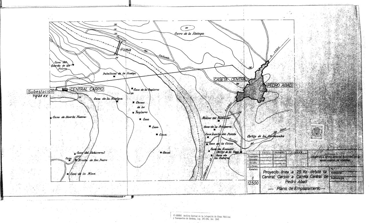 | 245 | ## | $aProyecto de línea 25 KV desde la Central Carpio a caseta central de Pedro Abad$bplano de emplazamiento$cCompañía Sevillana de Electricidad, Departamento de Córdoba |