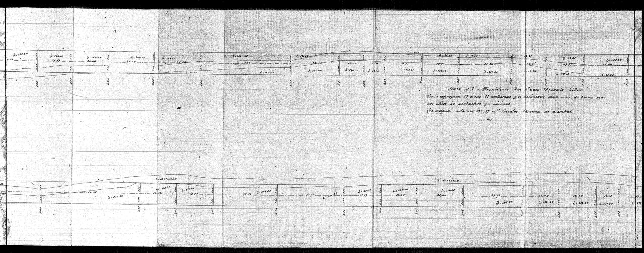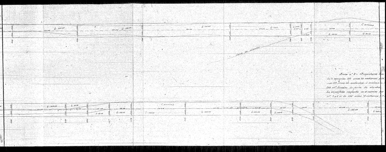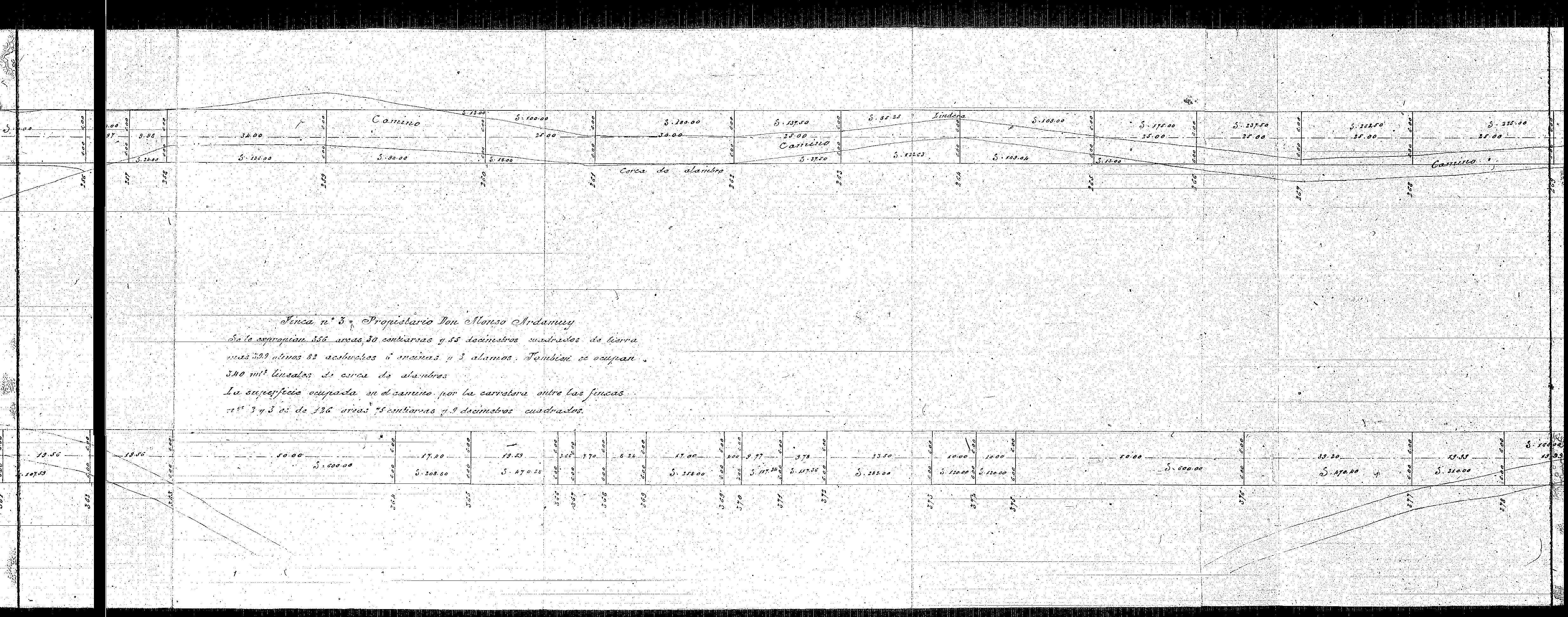 | 500 | ## | $aSin flecha de orientación | 500 | ## | $aRealizado en dos secciones debido a la falta de espacio | 500 | ## | $aAparece: un camino, linderos, cerca, fincas, arroyo de La Matilla y la carretera en proyecto | 500 | ## | $aEn el trazado encontramos numerosas medidas, perfiles transversales numerados y anotaciones | 500 | ## | $aEncontramos las parcelas a expropiar numeradas, con el nombre de sus propietarios, el cultivo y superficie ocupada | 500 | ## | $aAngulo inferior derecho con lugar, fecha y firma: Córdoba 22 de Diciembre 1906; fdo. el Ayudante Perito en representación del Estado Francisco S Molina; presenció las operaciones el Ingeniero Encargado Carlos Quero | 500 | ## | $aPresenta adjunto el expediente | 500 | ## | $aFormado por varios pliegos de papel pegados entre sí | 500 | ## | $aExiste otro ejemplar manuscrito en papel milimetrado dentro del mismo expediente |
