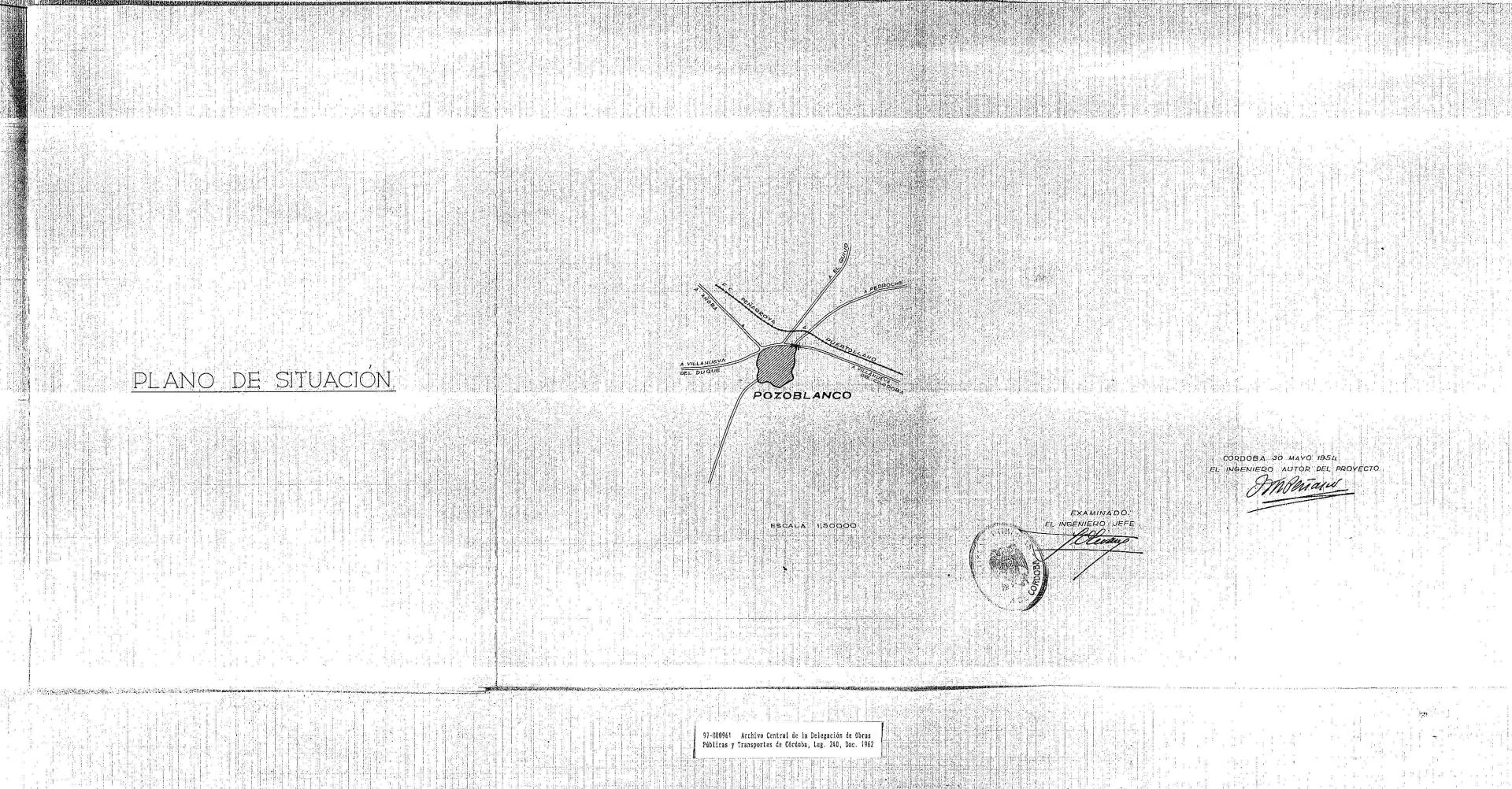 | 500 | ## | $aSin flecha de orientación | 500 | ## | $aAparece: el núcleo urbano de Pozoblanco, línea de ferrocarril de Peñarroya a Puertollano, carreteras a Añora, a Villanueva del Duque, a Villanueva de Córdoba, a El Guijo y a Pedroche y la zona a pavimentar en proyecto | 500 | ## | $aAngulo inferior derecho con lugar, fecha y firma: Córdoba 30 Mayo 1954; fdo. el Ingeniero autor del Proyecto J M Peñasco; examinado del Ingeniero Jefe J Olivares y sello en tinta de Obras Públicas, Provincia de Córdoba | 500 | ## | $aPresenta adjunto el expediente | 500 | ## | $aAdherida una hoja a modo de portada con el título y número de hoja |