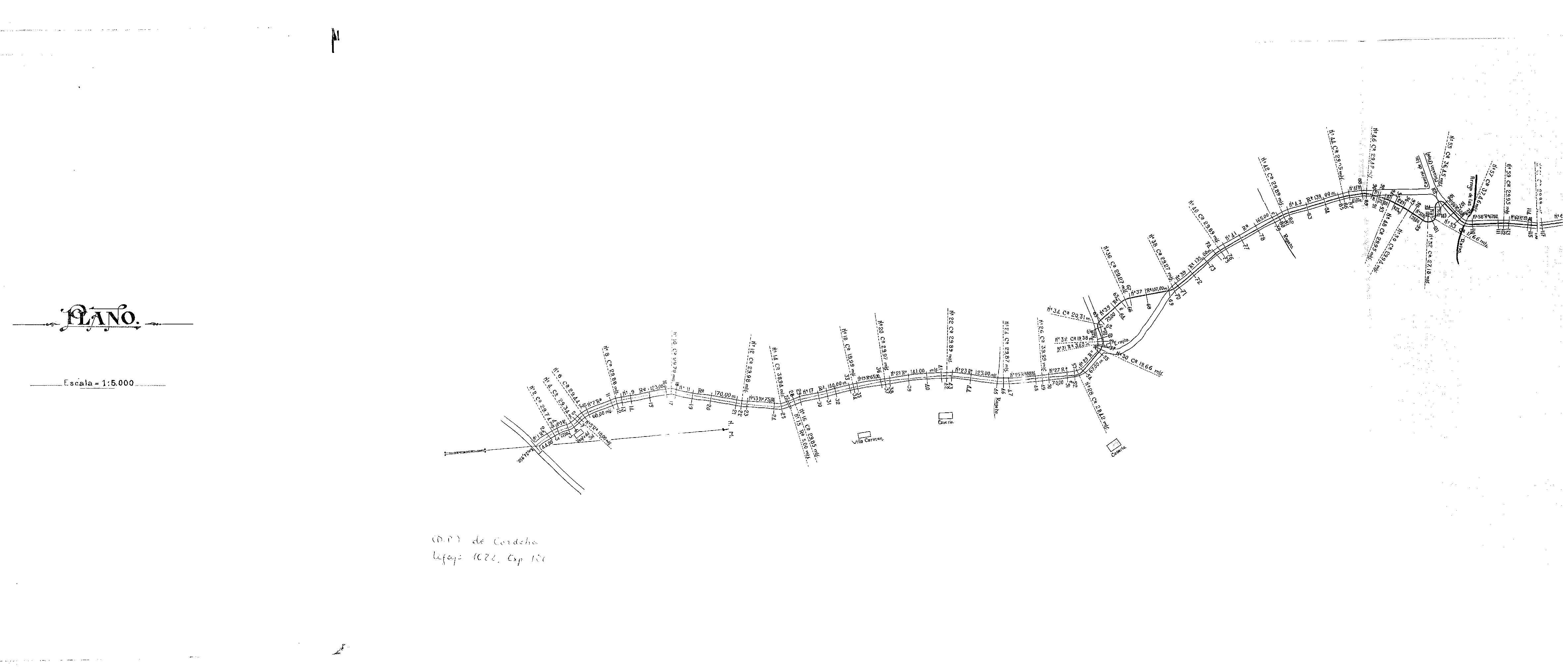| 500 | ## | $aSe trata de un plano del trazado del camino vecinal entre la Venta del Sol y el camino de Cabra | 500 | ## | $aCon flecha de orientación NM señalando al E | 500 | ## | $aAparece: la Venta del Sol, villa Carmen, caseríos, una ermita, el camino de Las Micaelas, el arroyo de Las Ratas, regajos, el arroyo del Fresno, arroyo Santa María, camino de Los Meteores, el carril Castillejos, el camino de Cabra y el camino vecinal en proyecto | 500 | ## | $aA lo largo del trazado encontramos gran cantidad de medidas y perfiles transversales numerados | 500 | ## | $aAngulo inferior derecho con lugar, fecha y firmas: Córdoba, Febrero de 1931; fdo. el Ingeniero autor del proyecto J M Peñasco; examinado y conformado por el Ingeniero Director Jiménez de la Cruz y sello en tinta de la Diputación Provincial de Córdoba, Vías y Obras |