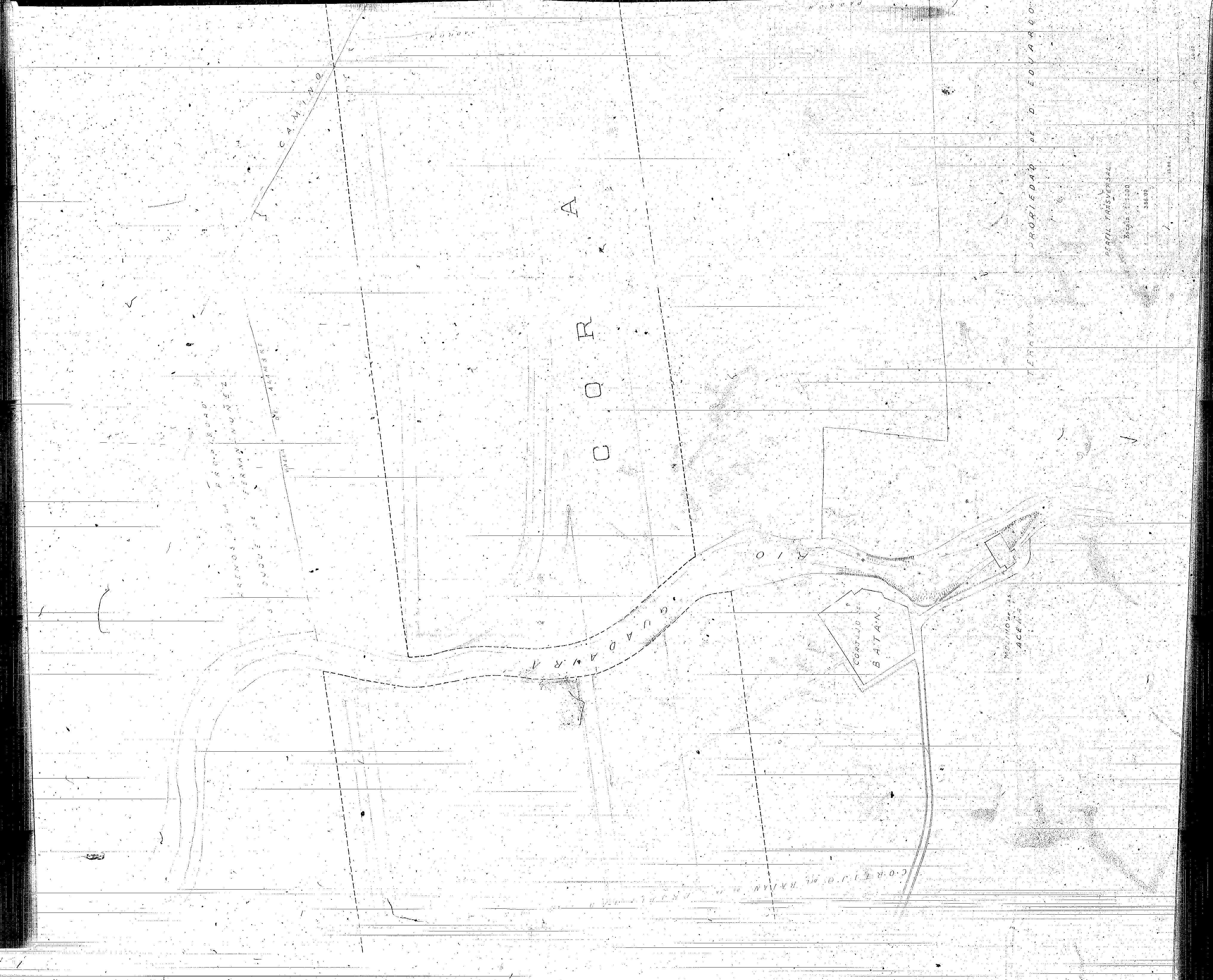 | 500 | ## | $aCarece de orientación | 500 | ## | $aAparece trazado blanco discontinuo que indica los terrenos de la Corta de Tablada | 500 | ## | $aAparece con sombreado (tono blanquecino) líneas que demarcan las propiedades de los terrenos colindantes a la Corta | 500 | ## | $aDenominación de infraestructuras: camino del Copero, gavias, también aparecen algunos cortijos (el del Batán sombreado), y línea que indica valla de alambre | 500 | ## | $aEn margen inferior derecha, firma, en margen superrior izquierdo, sello de la Junta de Obras | 500 | ## | $aEn margen inferior dibujo de la valla de alambre (alzado) | 500 | ## | $aSe incluye dentro del expediente de expropiación forzosa, (...) pág. 39 | 500 | ## | $aSe encuentra deteriorado | 500 | ## | $aAparece el Río Guadalquivir, la Vuelta del Río, y el Río Guadaira |