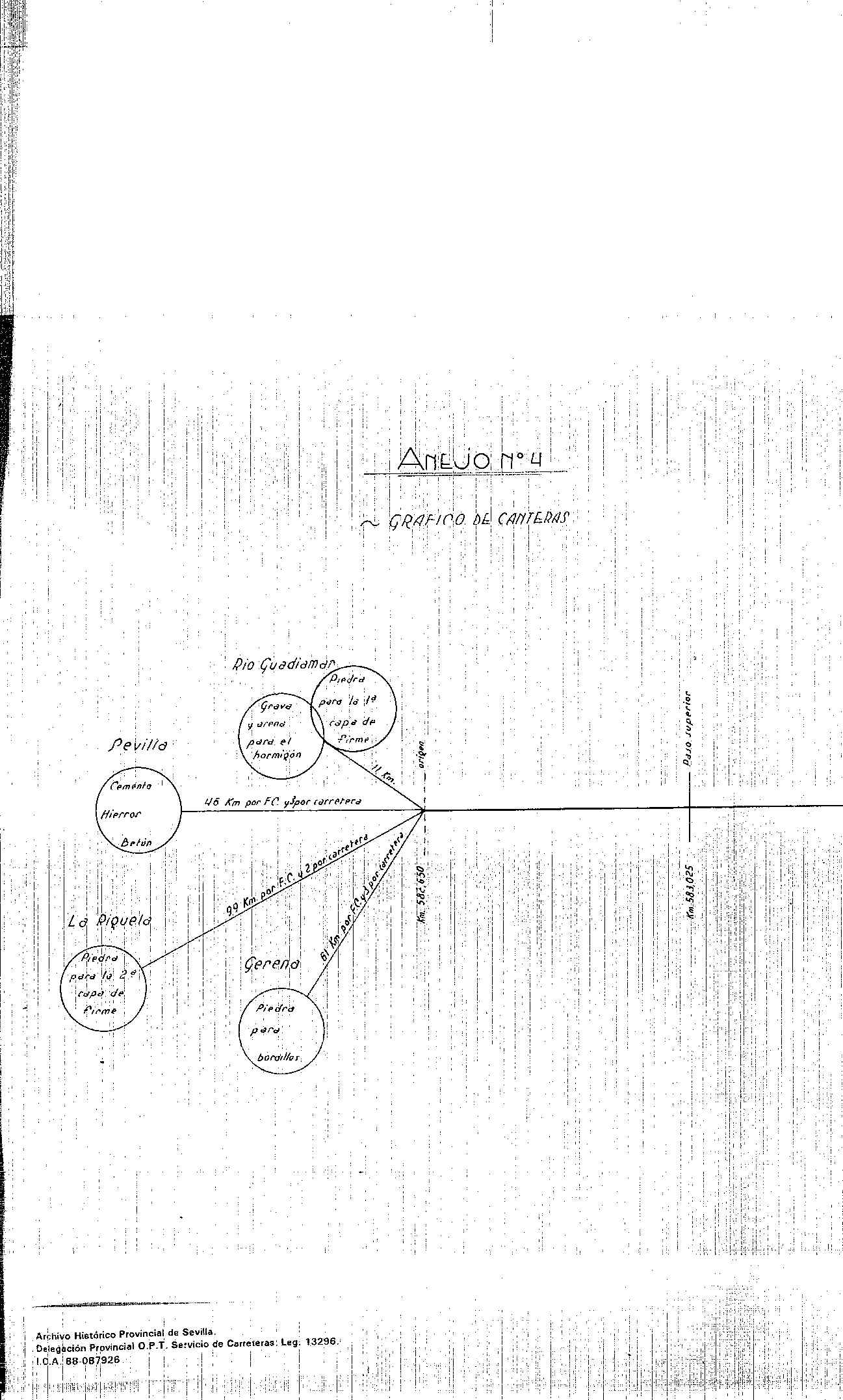 | 500 | ## | $aDoc. 108. Jefatura de pasos a nivel. Proyecto de sustitución del paso a nivel de Castillejo del Campo en la carretera de Alcalá de Guadaíra a Huelva, km. 583'025 en el cruce con el ferrocarril de Sevilla a Huelva, km. 48'357. Provincia de Sevilla. Ingeniero D. Gabriel de Benito Angulo. Año de 1936 | 500 | ## | $aEncarpetado | 500 | ## | $aEn el origen del tramo del eje viario (PK 582'650) parten de manera gráfica 5 líneas con las longitudes correspondientes hacia las extracciones efectuadas para la ejecución de las obras con la localización, materiales y distancia |