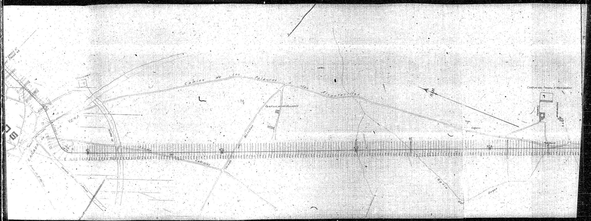 | 500 | ## | $aLiquidaciones. Doc. 5. Obras Públicas, Provincia de Sevilla. Carretera de 3er orden de Sevilla a la Estación de las Alcantarillas por Dos Hermanas. Trozos 3º y 4º. Liquidación de las obras. Ingeniero D. Juan B. Conradi. Año de 1907 | 500 | ## | $aEl plano aparece encarpetado | 500 | ## | $aFirma manuscrita del Ingeniero Jefe que examina el proyecto | 500 | ## | $aOrientado NM al NO del plano | 500 | ## | $aSe representa el trazado del trozo 4º de la mencionada ctra., desde Los Palacios (km. 0) hasta el paso a nivel sobre la línea de F.C. de Sevilla a Cádiz (km. aproximado 9,550), una vez sobrepasado el río Salado, apareciendo además el citado núcleo de población con su cementerio, el arroyo Cañada de la Vera, veredas, senda y caminos, gabías y regajos, los cortijos del Trobal y Maribañez, así como el de Juan Gómez, y alguna edificación aislada (venta) y el puente de Las Alcantarillas sobre el río Salado. Además se señala el límite de los términos municipales de Utrera y Los Palacios. El trazado se divide en 5 tramos (el último sin numerar) y 513 perfiles transversales. Se referencian anotaciones numéricas de carácter técnico. Se señalan los puntos kilométricos en el trazado de la ctra | 500 | ## | $aEn legajo 372, doc. 6, aparece copia idéntica, sin firma del Ingeniero Jefe no siendo manuscritas las de los otros dos autores |