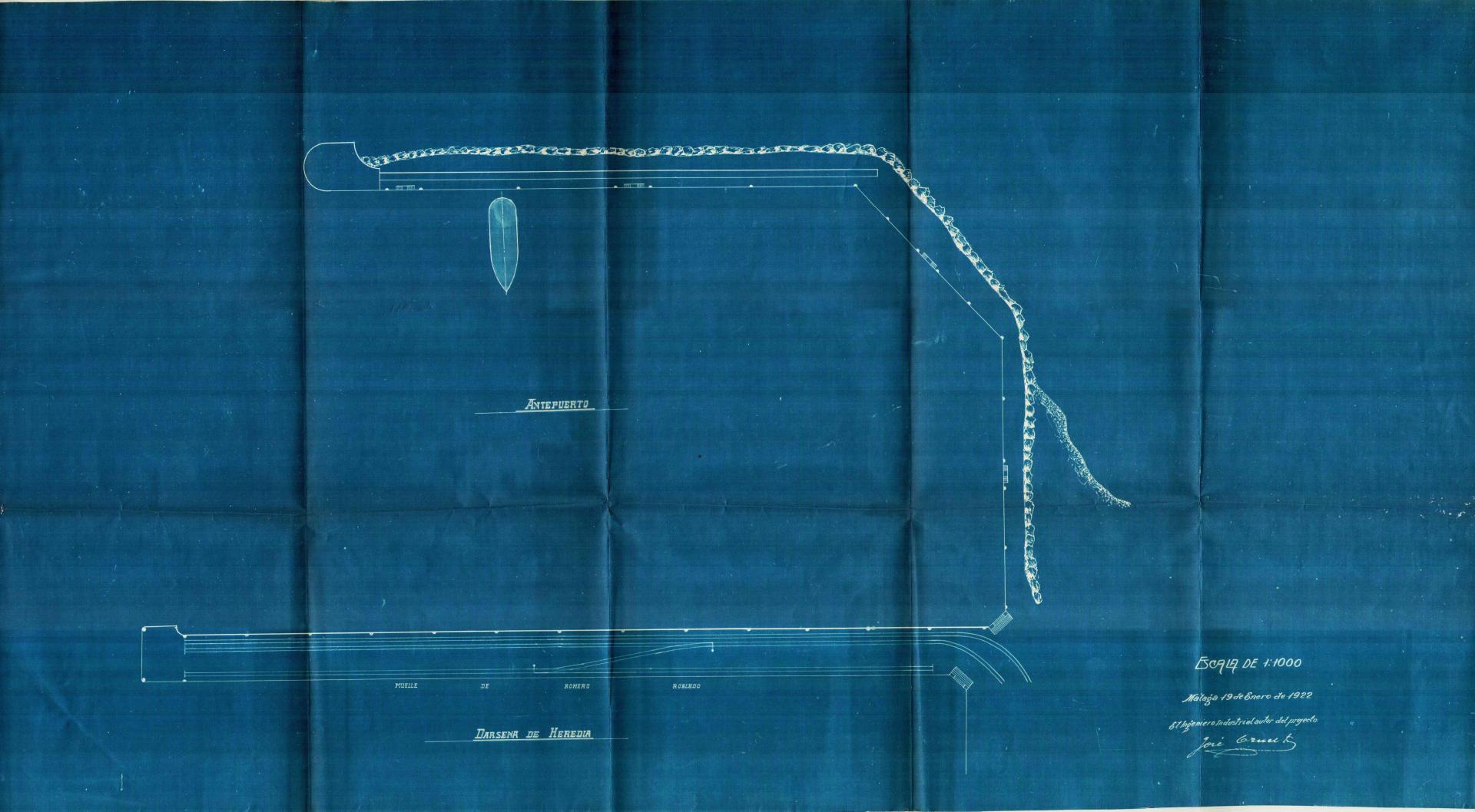 | 500 | ## | $aPlano del Antepuerto del Puerto de Málaga, perteneciente a un proyecto de establecimiento de un depósito flotante de carbón mineral, de 1922 | 500 | ## | $aDescribe, de manera sintética, las instalaciones del Antepuerto y señala el emplazamiento del depósito flotante proyectado | 500 | ## | $aSeñala, además, el trazado de la red ferroviaria en el dique transversal del Oeste | 500 | ## | $aFirmado por un ingeniero Industrial, autor del proyecto | 500 | ## | $aOrientación Norte - Sur | 500 | ## | $aBuen estado de conservación |