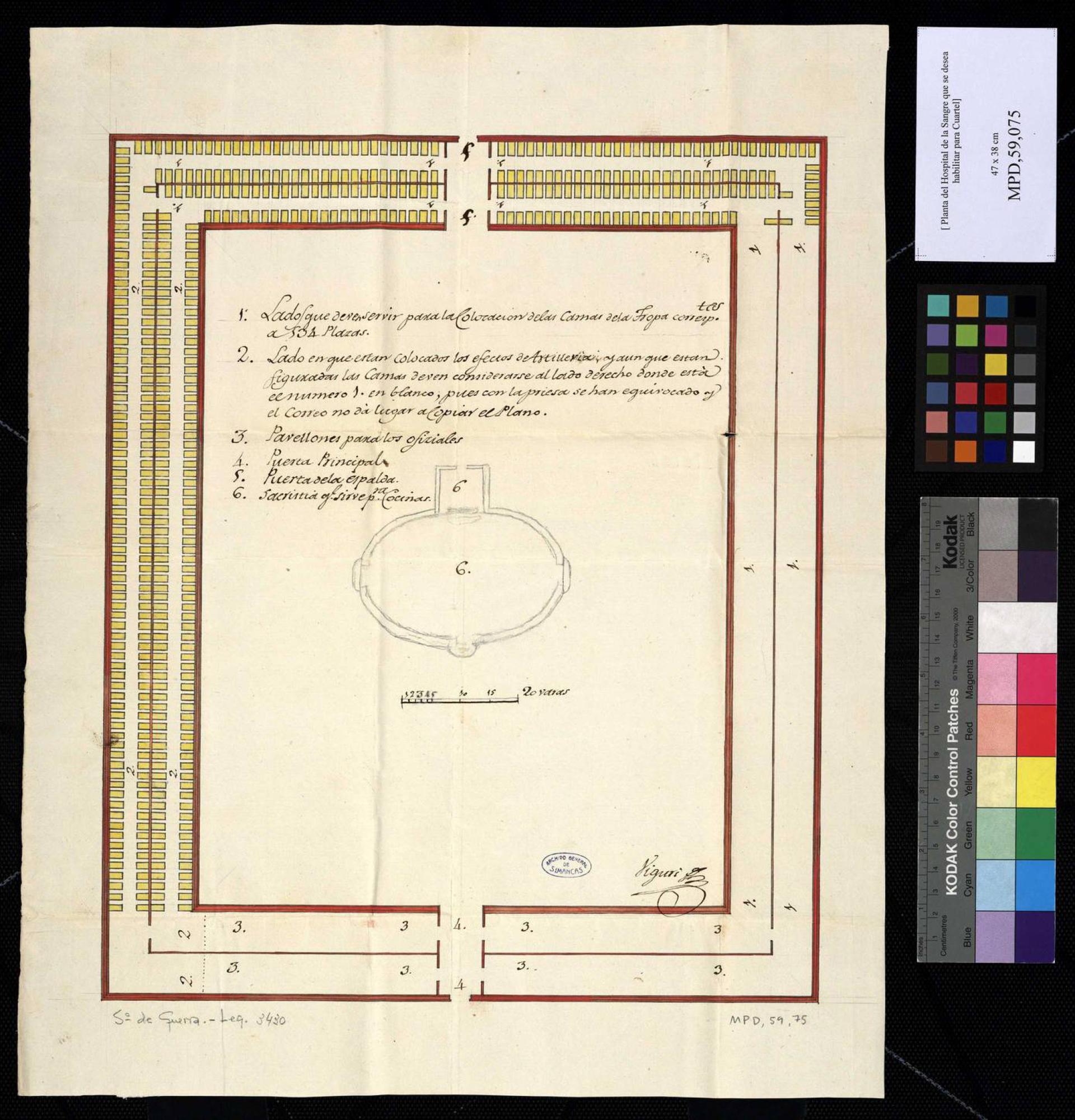Mención del título [Planta del Hospital de la Sangre que se desea habilitar para Cuartel]  .  / Luis de Viguri. Material cartográfico
