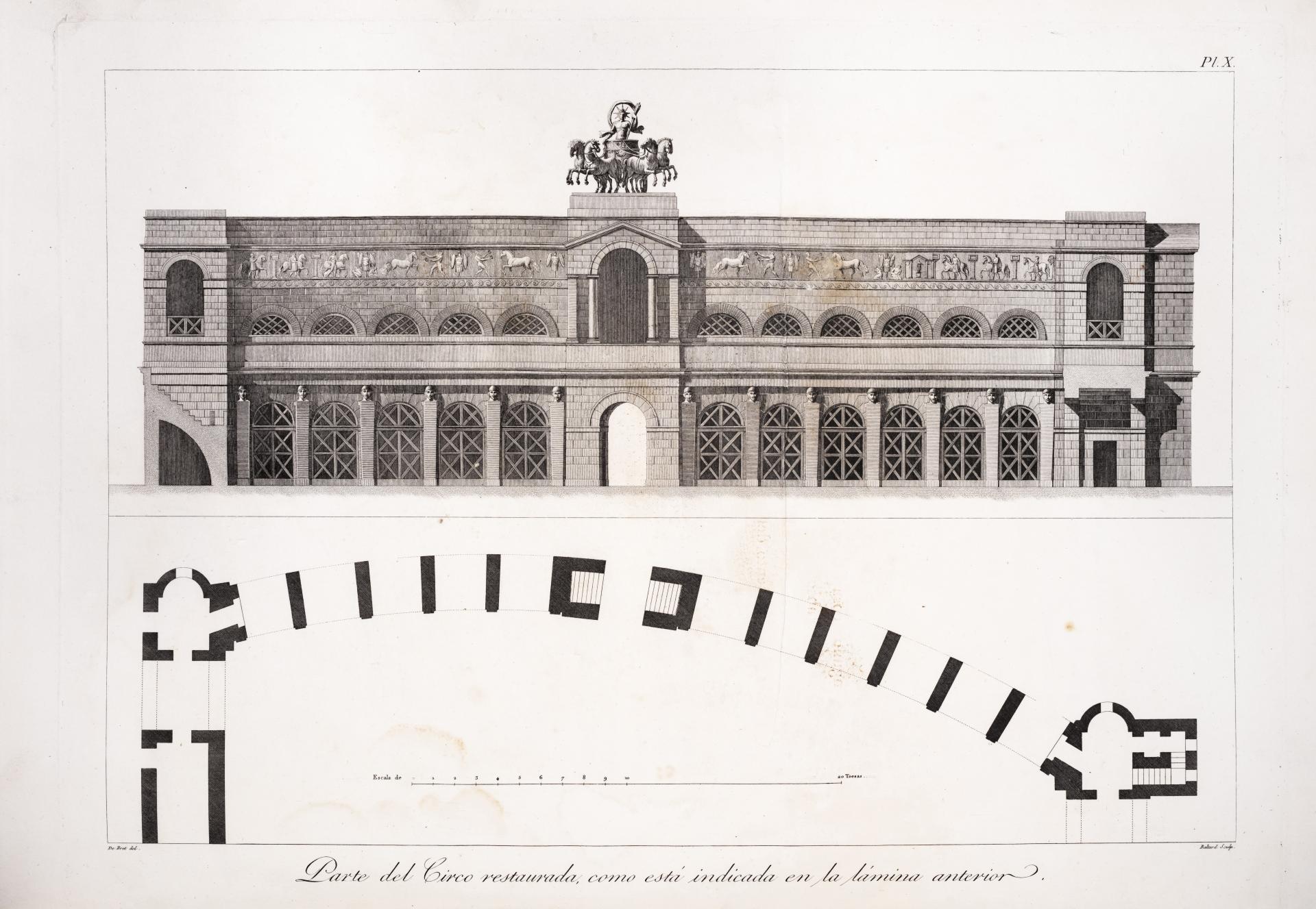 | 500 | ## | $aGrabado calcográfico con la restitución hipotética de la fachada con las cárceres o puertas de salida de los carros del circo romano representado en el mosaico de las Musas o del Circo de Itálica. Corresponde a la lámina X de la obra Descripción de un pavimento en mosaico descubierto en la antigua Itálica, hoy Santiponce, en las cercanías de Sevilla, del francés Alexandre de Laborde, con pie de imprenta en Madrid y fecha de 1806. Es la versión española de la edición francesa original, titulada Description d'un pavé en mosaïque decouvert dans l'ancienne ville d'Italica, publicada en París por P. Didot l'aîné en 1802, dedicada al famoso mosaico de las Musas o del Circo de Itálica, descubierto en 1799 y desaparecido a fines del siglo XIX. |