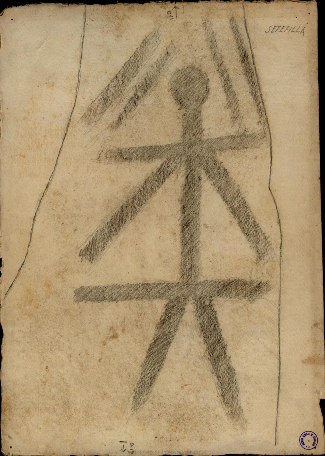 Dibujo lineal humano de la parte superior de la estela tartésica de Setefilla