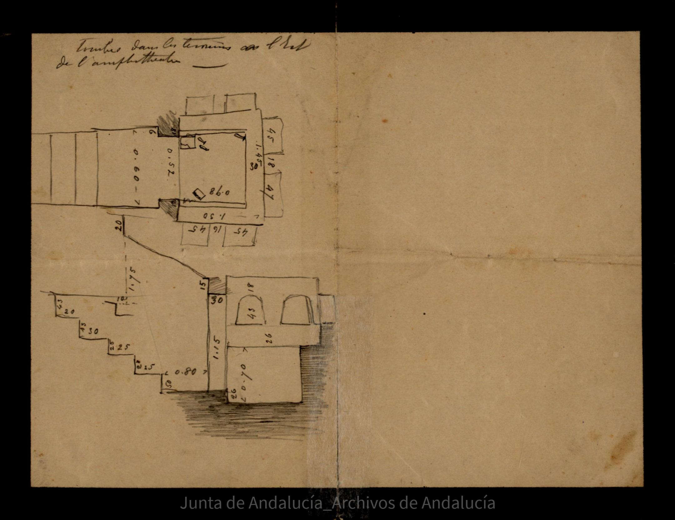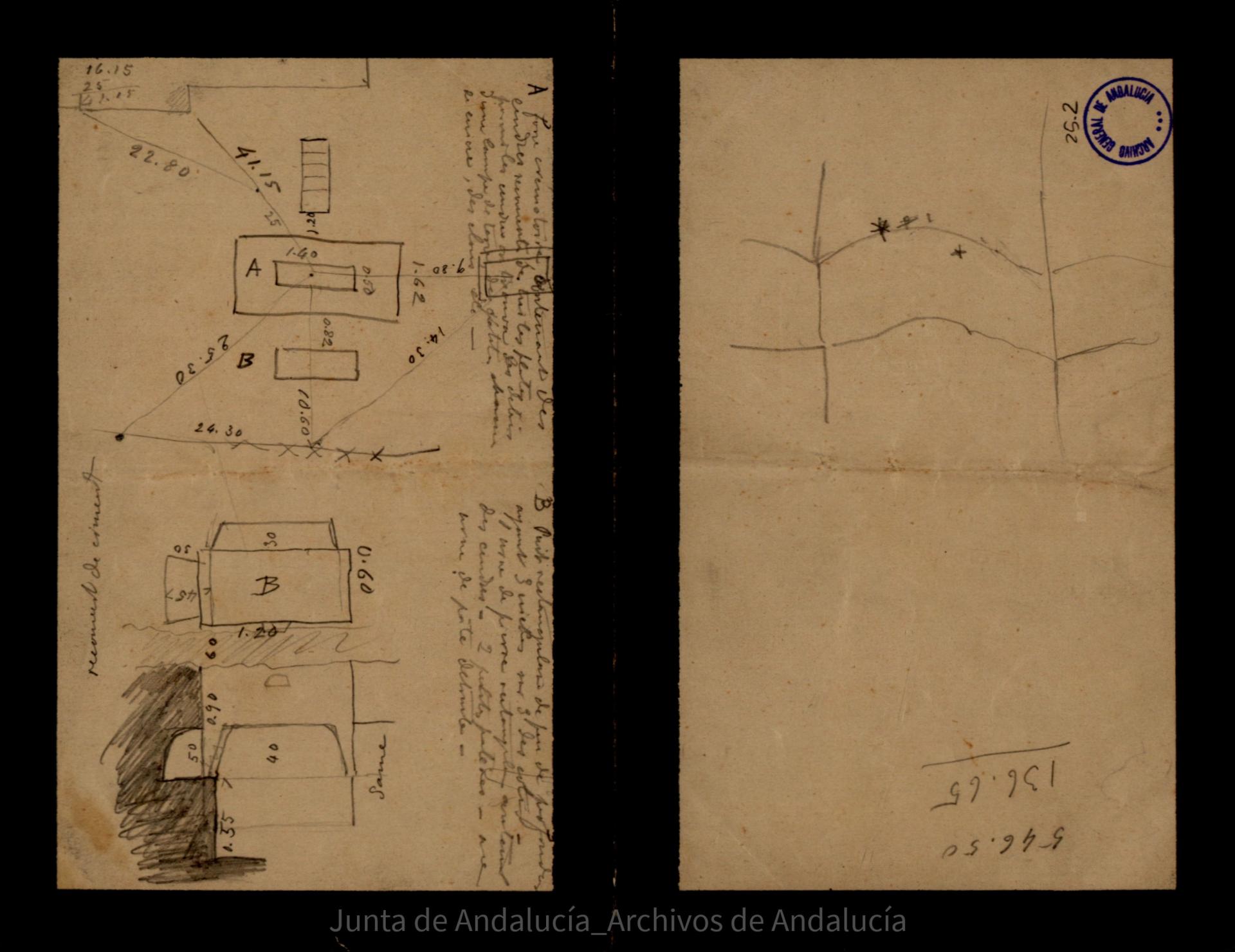 $aDisposición de tumbas con medidas. Don notas indicadas con letras A y B |