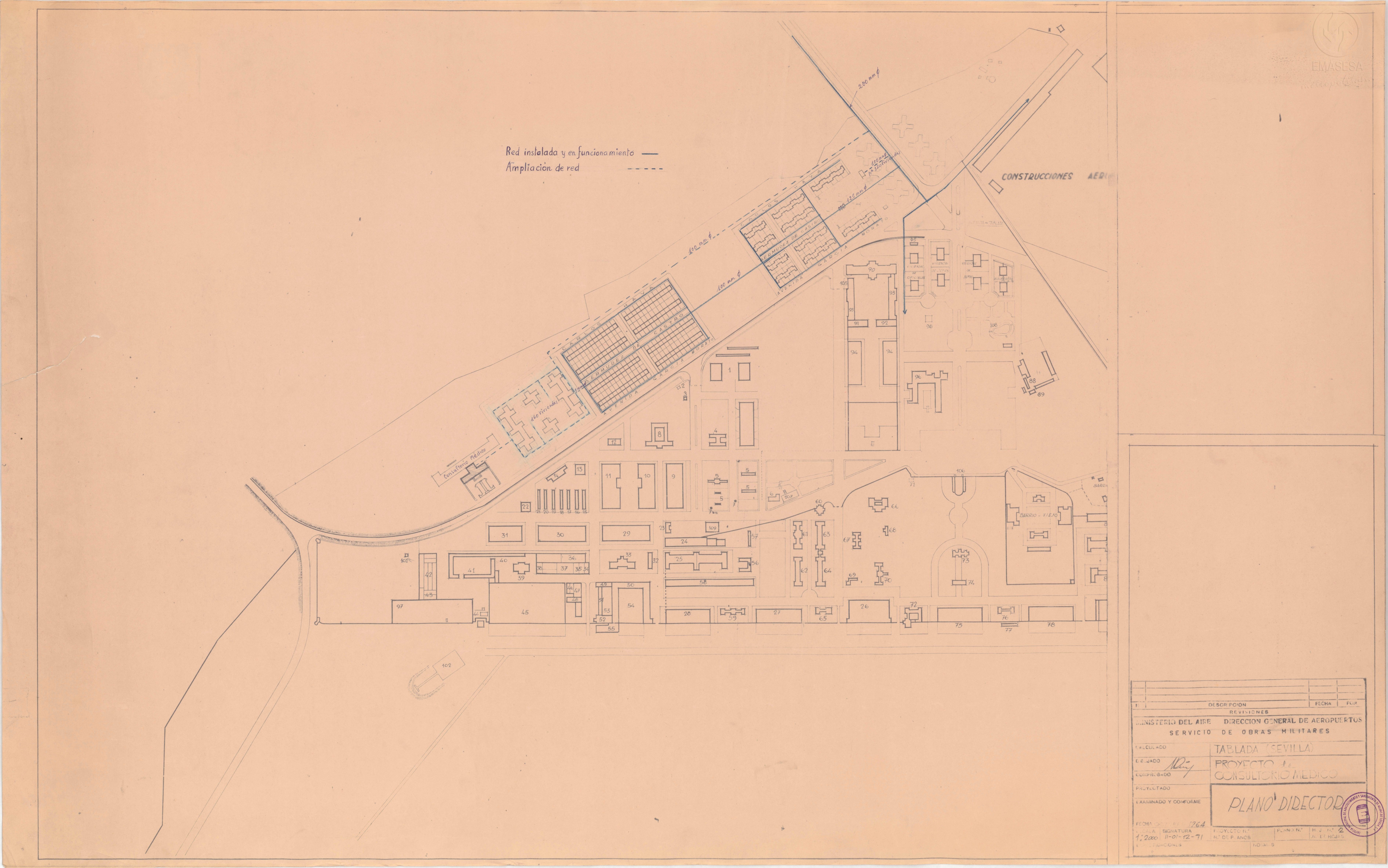 | 500 | ## | $aSe representa plano del barrio de Tablada, en Sevilla, identificándose parte de su viario. Aparecen la antigua Avenida García Morato (hoy Avenida Maestranza Aérea) y la calle Bermúdez de Castro (hoy Avenida Aeródromo de Tablada) | 500 | ## | $aEn el ángulo inferior derecho aparece el sello de la Empresa Municipal de Abastecimiento y Saneamiento de Aguas de Sevilla, S.A. |