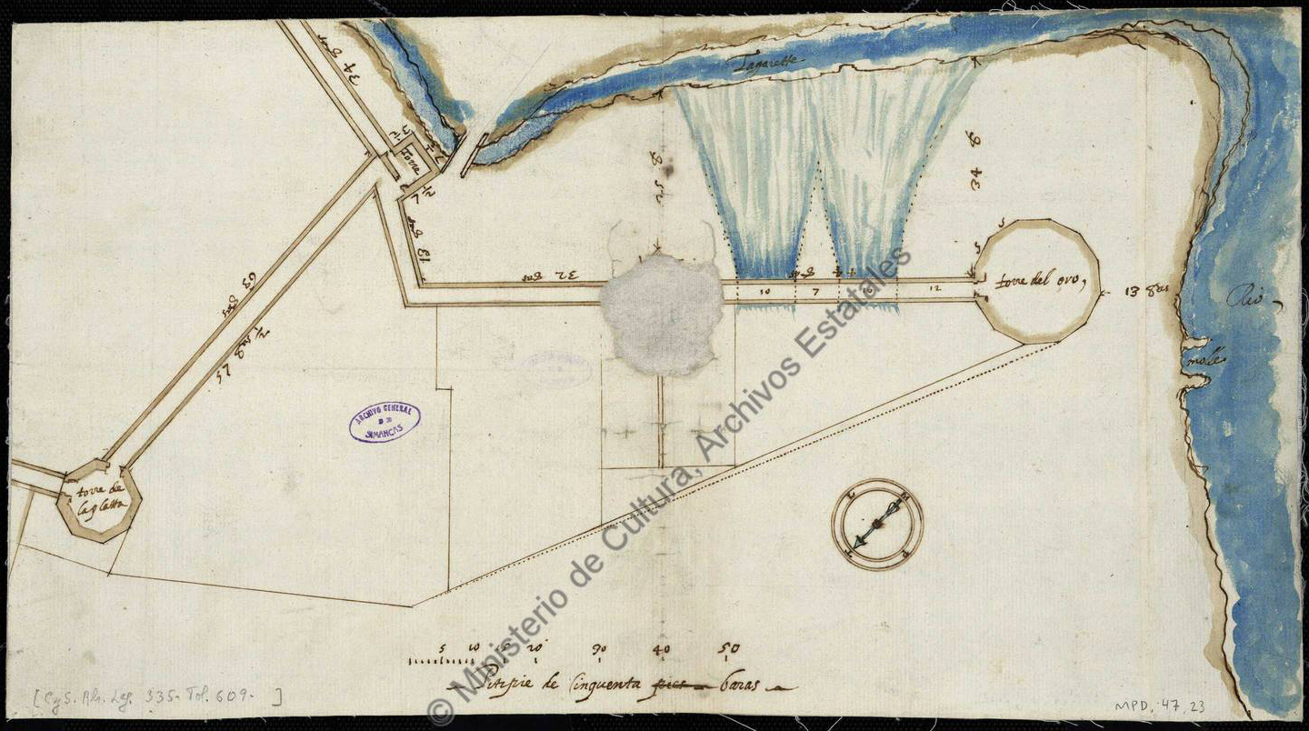 | 500 | ## | $aTítulo redactado a partir del contenido del documento | 500 | ## | $aPlano donde se indica el lugar donde se quieren establecer Roberto Marcelelais y Diego de Valdeovinos. Segun la carta enviada por Bernardino Delgadillo Avellanada al Secretario Juan de Ybarra fechada en Sevilla, 6 de agosto de 1609 | 500 | ## | $aEscala gráfica de "Cinquenta baras" [=11,8cm]. Orientado con flecha | 500 | ## | $aDibujado a tinta sepia y lavado en siena y azul |