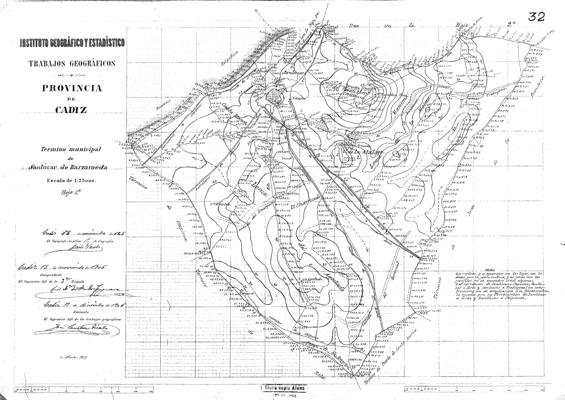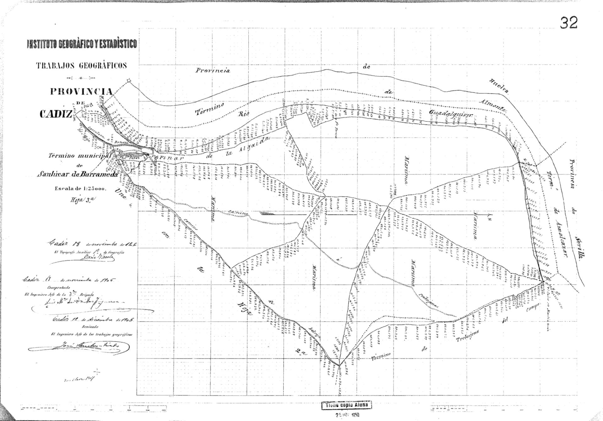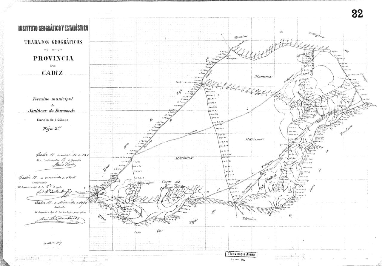 | 245 | ## | $aTérmino municipal de Sanlúcar de Barrameda$b[nivelación] : provincia de Cádiz$cel Topógrafo Auxiliar 1o de Geografía... ; comprobado, el Ingeniero Jefe de la 3a Brigada...; revisado, el Ingeniero Jefe de los trabajos geográficos.. ; Instituto Geográfico y Estadístico$h[Material cartográfico] |