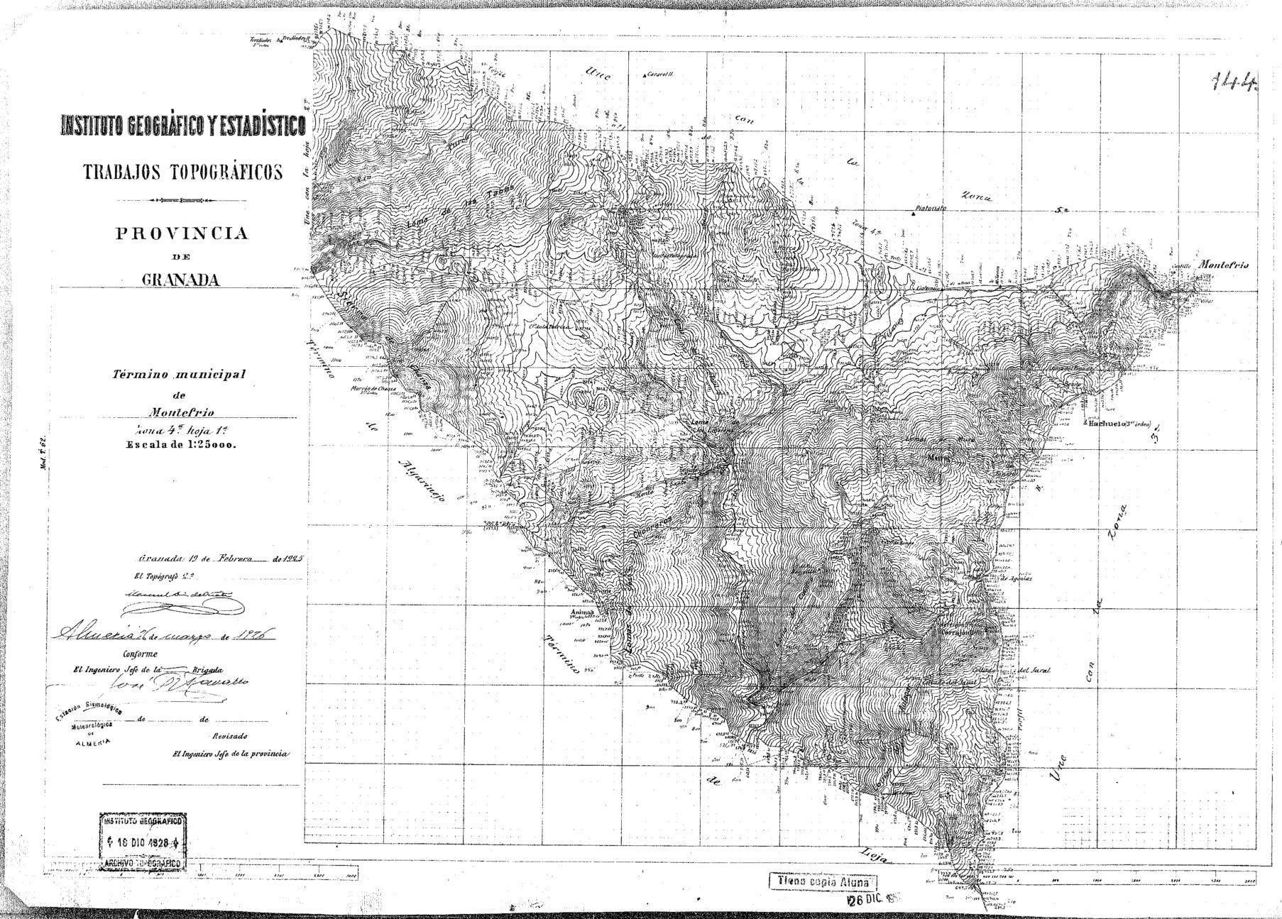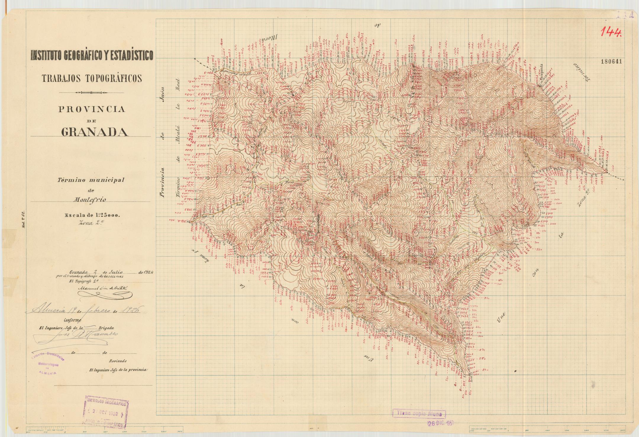 | 500 | ## | $aFirmado en Almería y Granada; por los topógrafos, en 1924 ó 1925 | 500 | ## | $aSello con texto: "Tiene copia Alma. 26 Dic. 1957 | 500 | ## | $aMapa dividido en 5 zonas | 500 | ## | $aDescripción basada en : zona 1º |