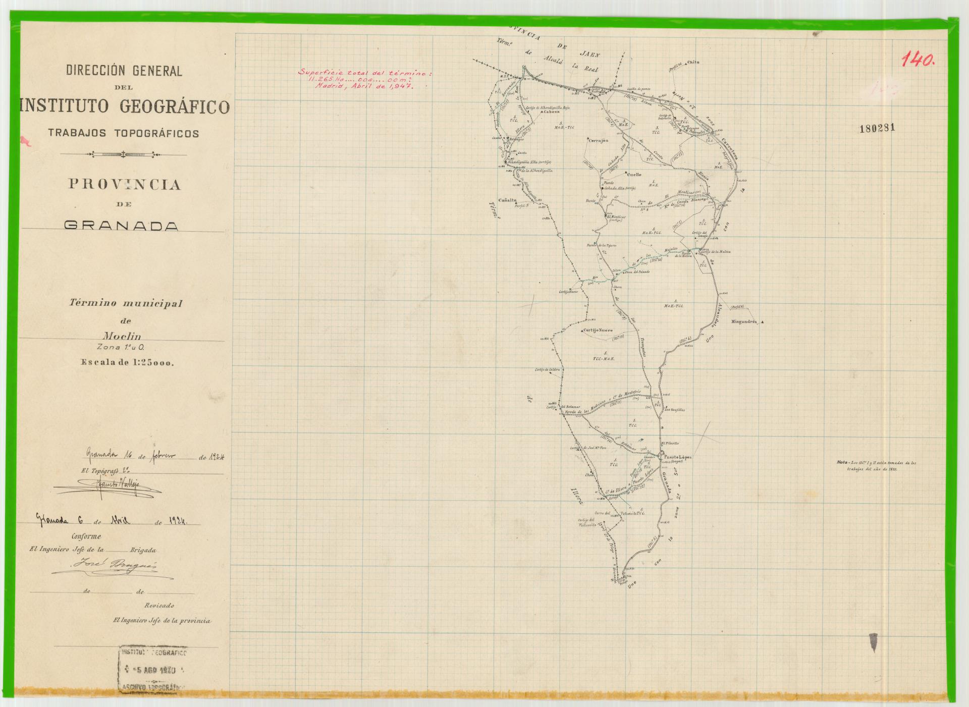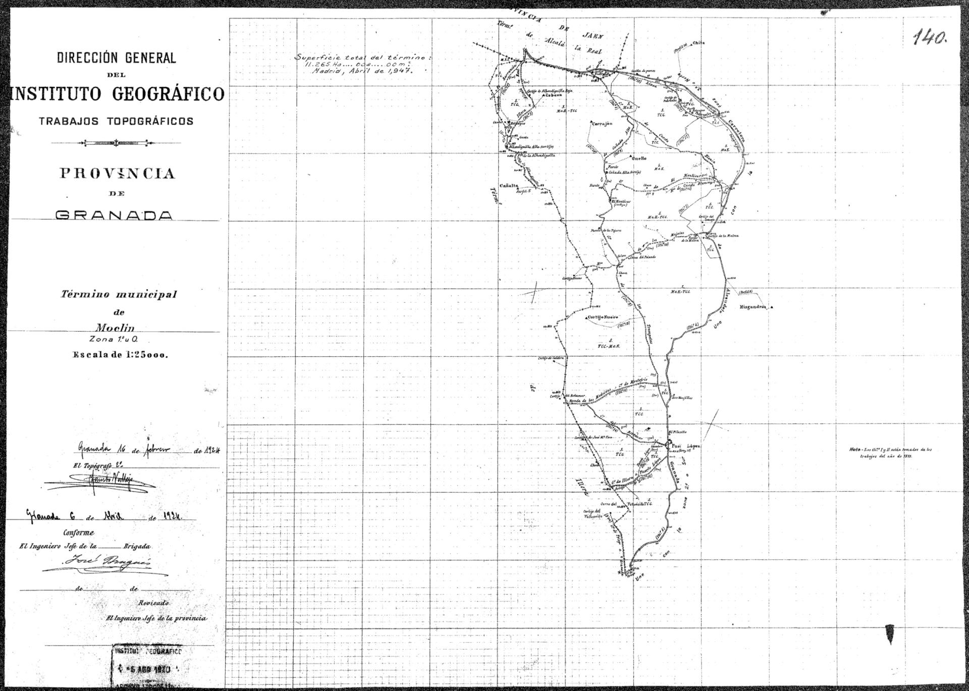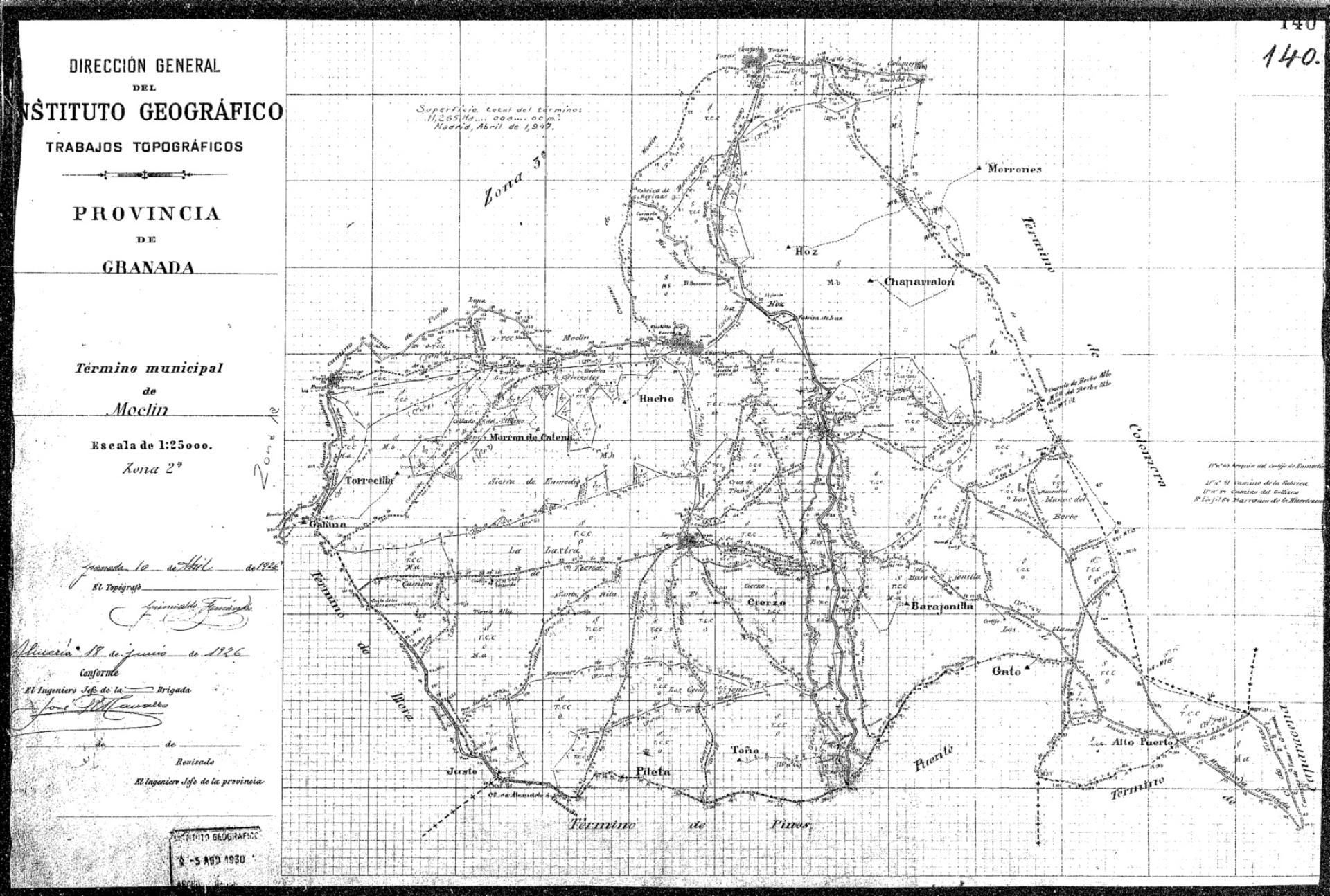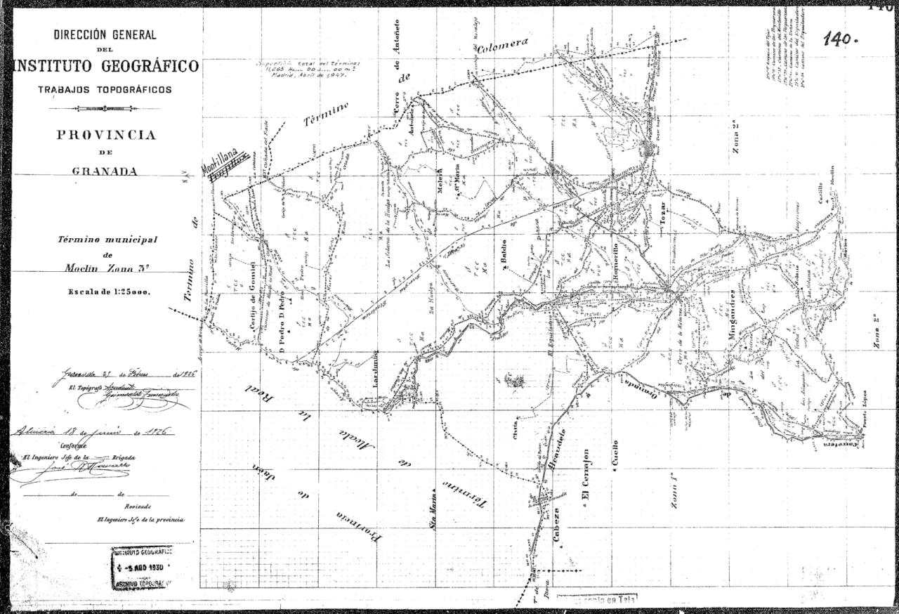 | 500 | ## | $aFirmado en Granada | 500 | ## | $aNota con la superficie total del término. Firmada en Madrid, 1947 | 500 | ## | $aDescripción basada en Zona 1a | 500 | ## | $aEn la zona 3a figura sello con texto: "Tiene copia en tela |